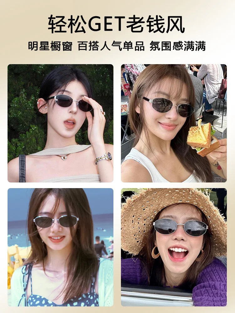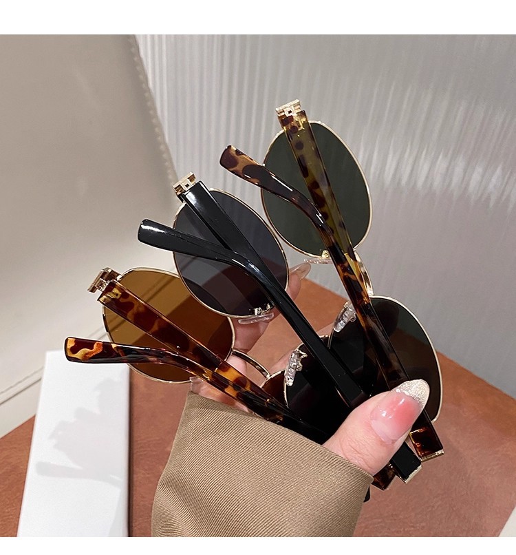올드 머니 스타일 메탈 선글라스, 트렌디한 남녀 복고풍 인터넷 연예인 고급 선글라스, 둥근 얼굴 스트리트 스타일 홍콩 스타일 선글라스스토어 가기