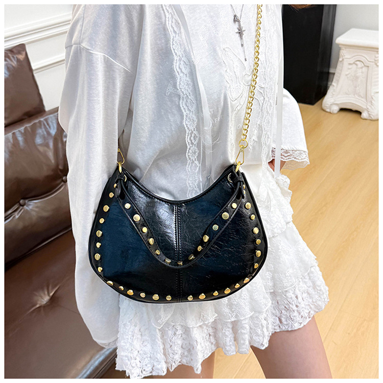 2025년 신상 패션 핸드헬드 숄더백 여성 통근 고급스러운 크로스백 리벳 겨드랑이 가방 문백스토어 가기