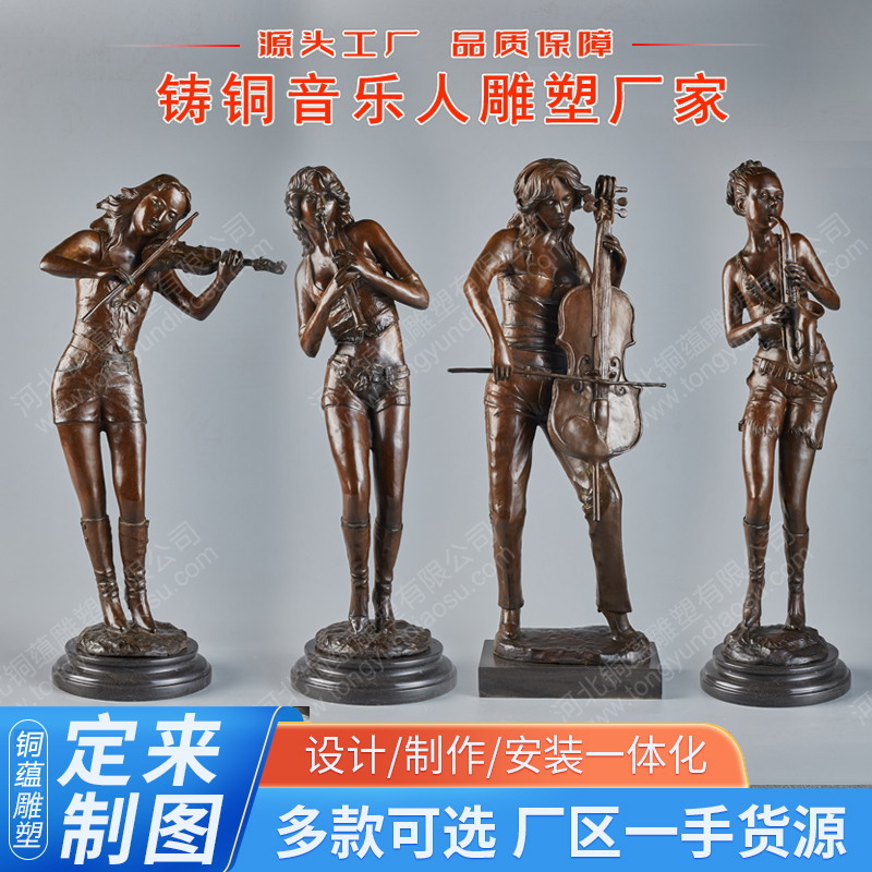 주조 구리 음악 캐릭터 조각 맞춤형 대형 음악가 구리 동상 유럽식 불기, 연주 및 노래하는 사람 구리 장식품 제조업체스토어 가기