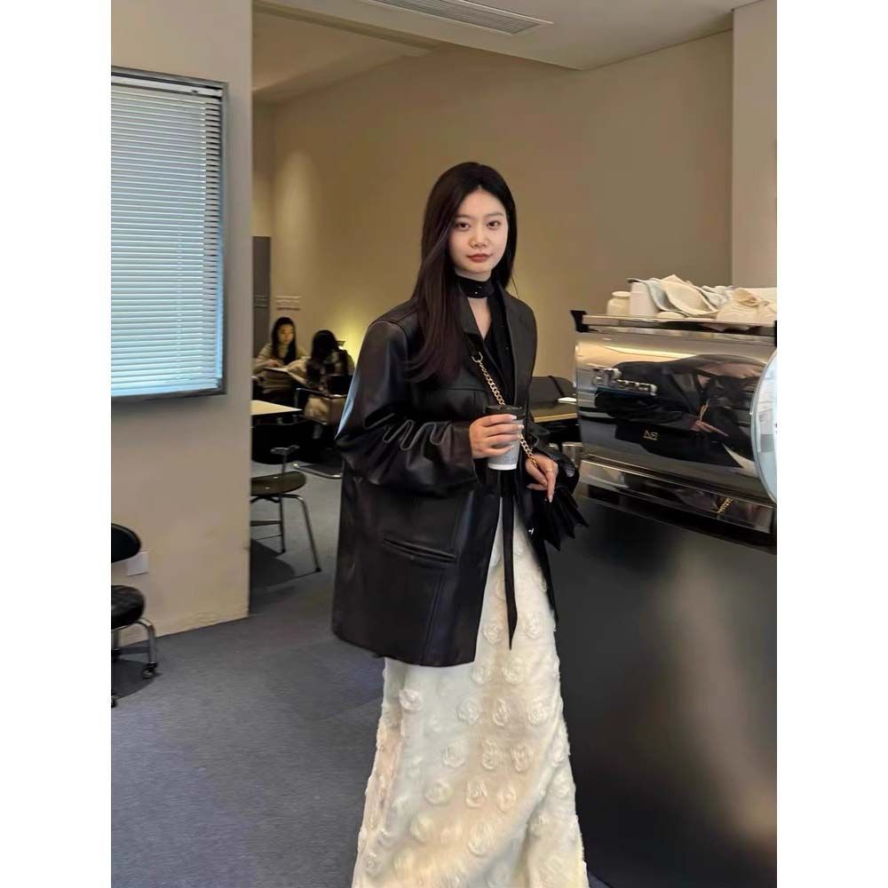 여성을위한 검은 가죽 자켓 2025 새로운 봄, 가을 짧은 한국 스타일 느슨한 복고풍 캐주얼 홍콩 스타일 오토바이 자켓