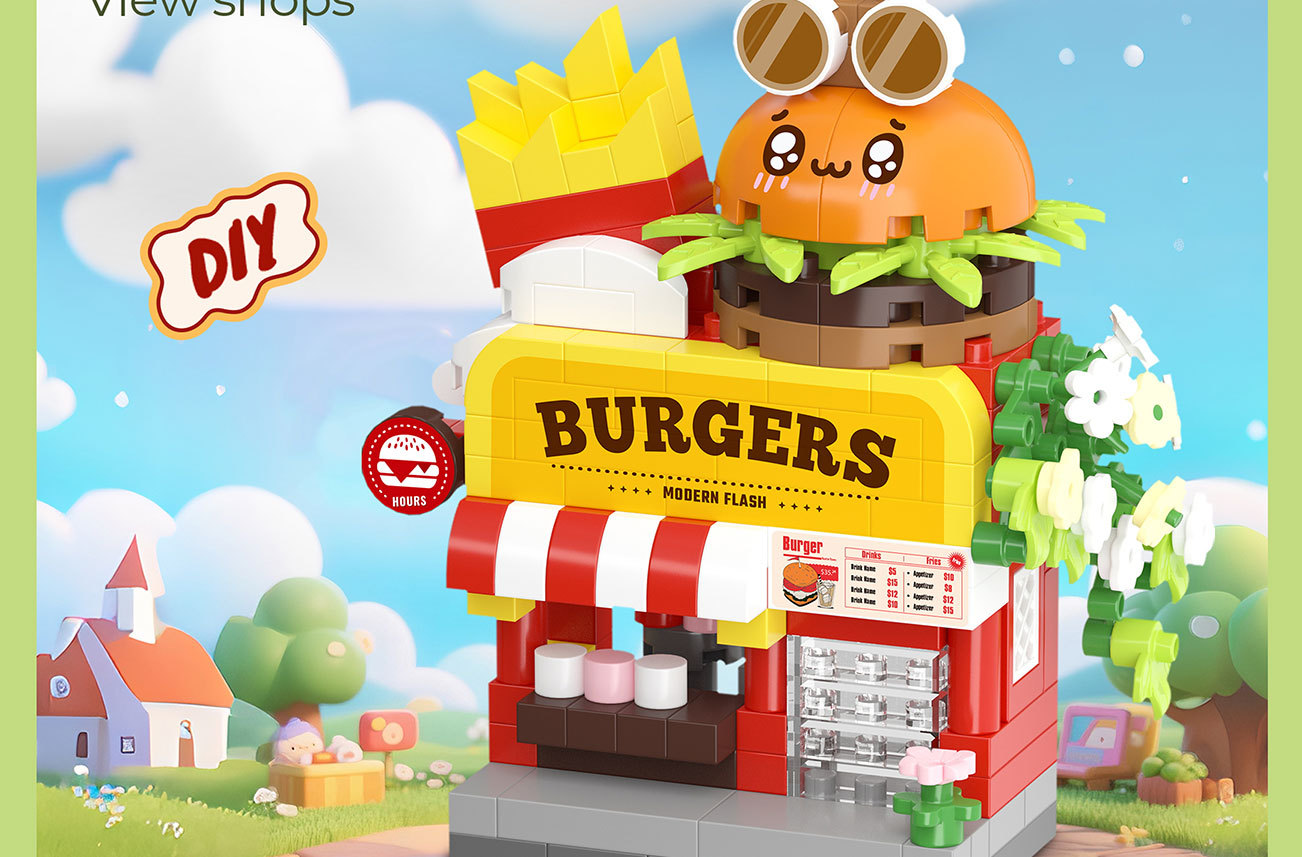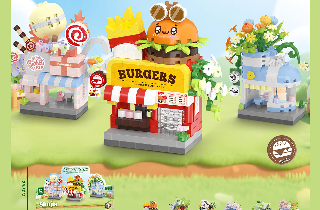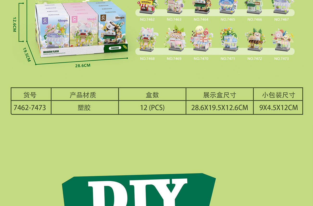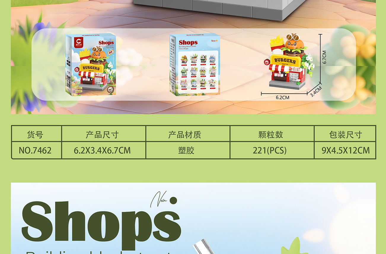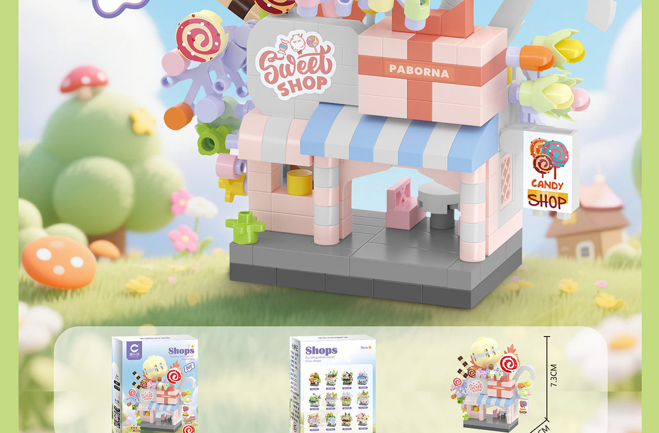 Chaolechuang 미세 입자 레저 빌딩 블록 장난감 7462-7473 스트리트 뷰 작은 상점 시리즈 도매 대리점
