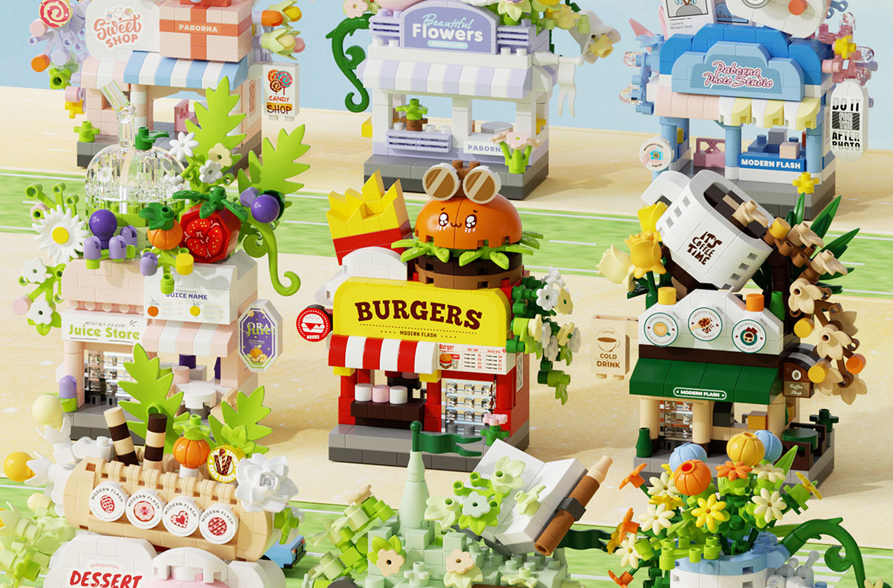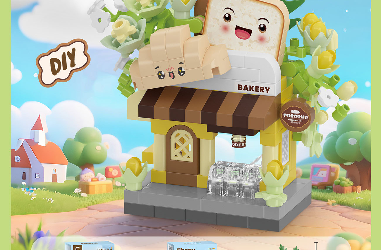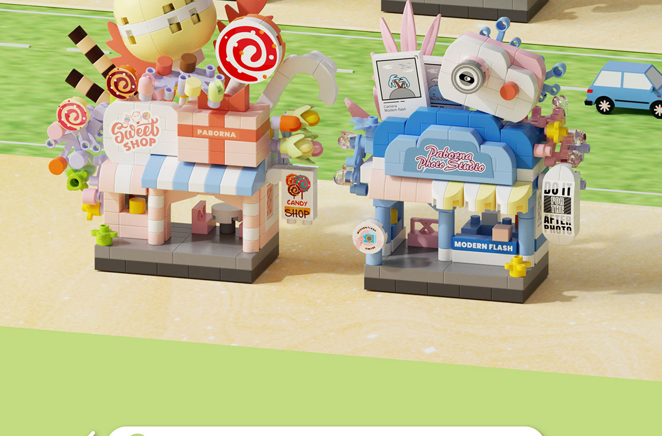 Chaolechuang 미세 입자 레저 빌딩 블록 장난감 7462-7473 스트리트 뷰 작은 상점 시리즈 도매 대리점스토어 가기