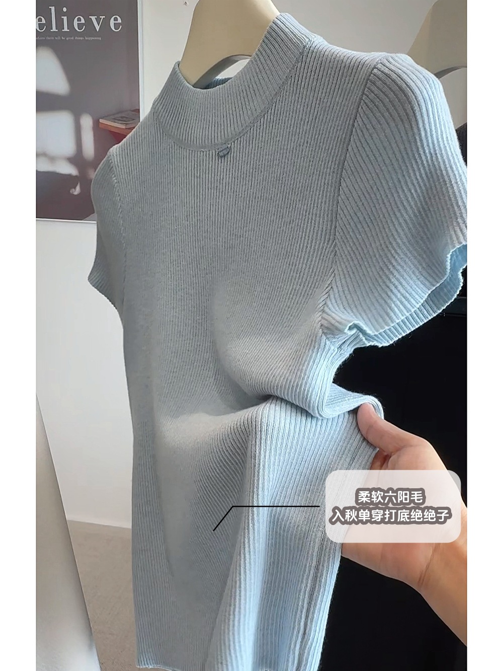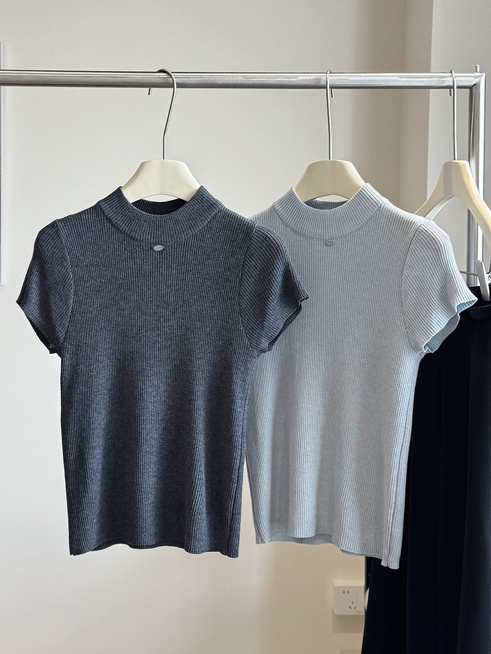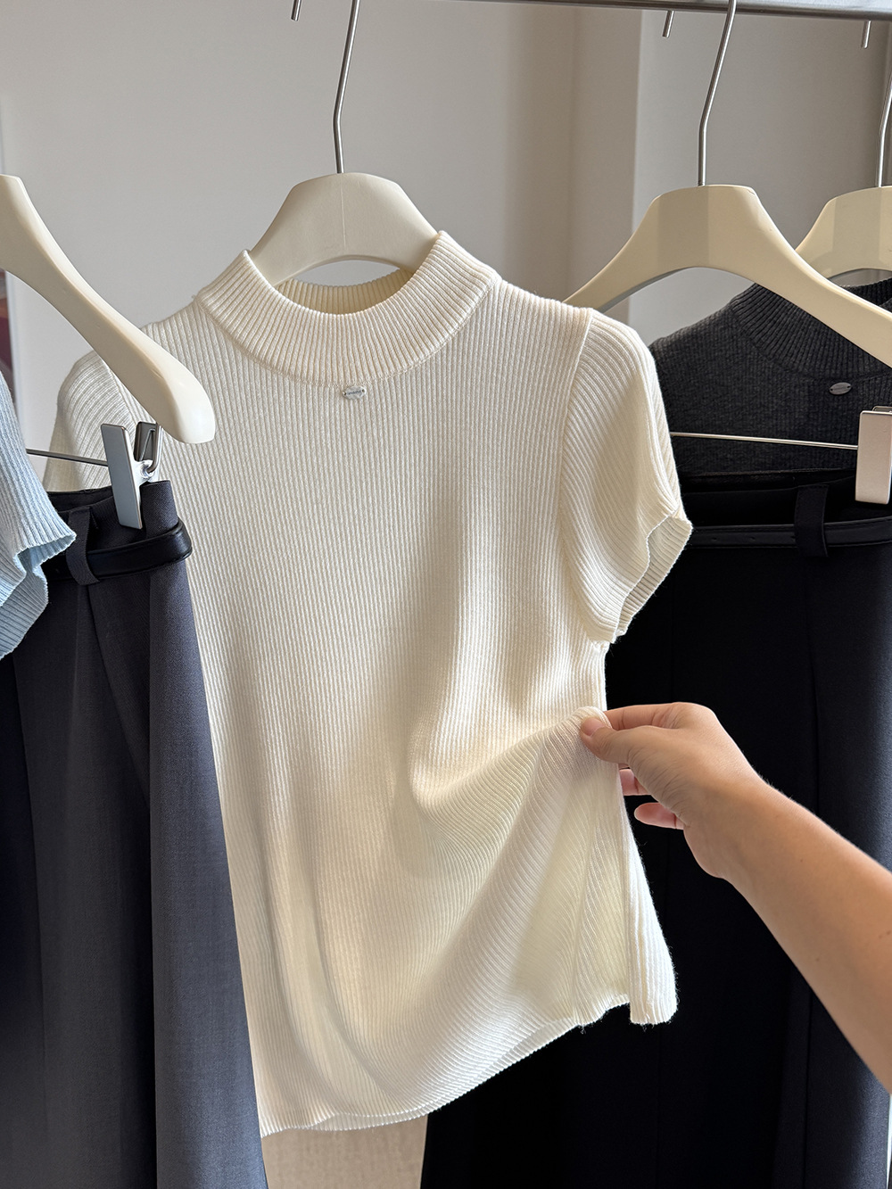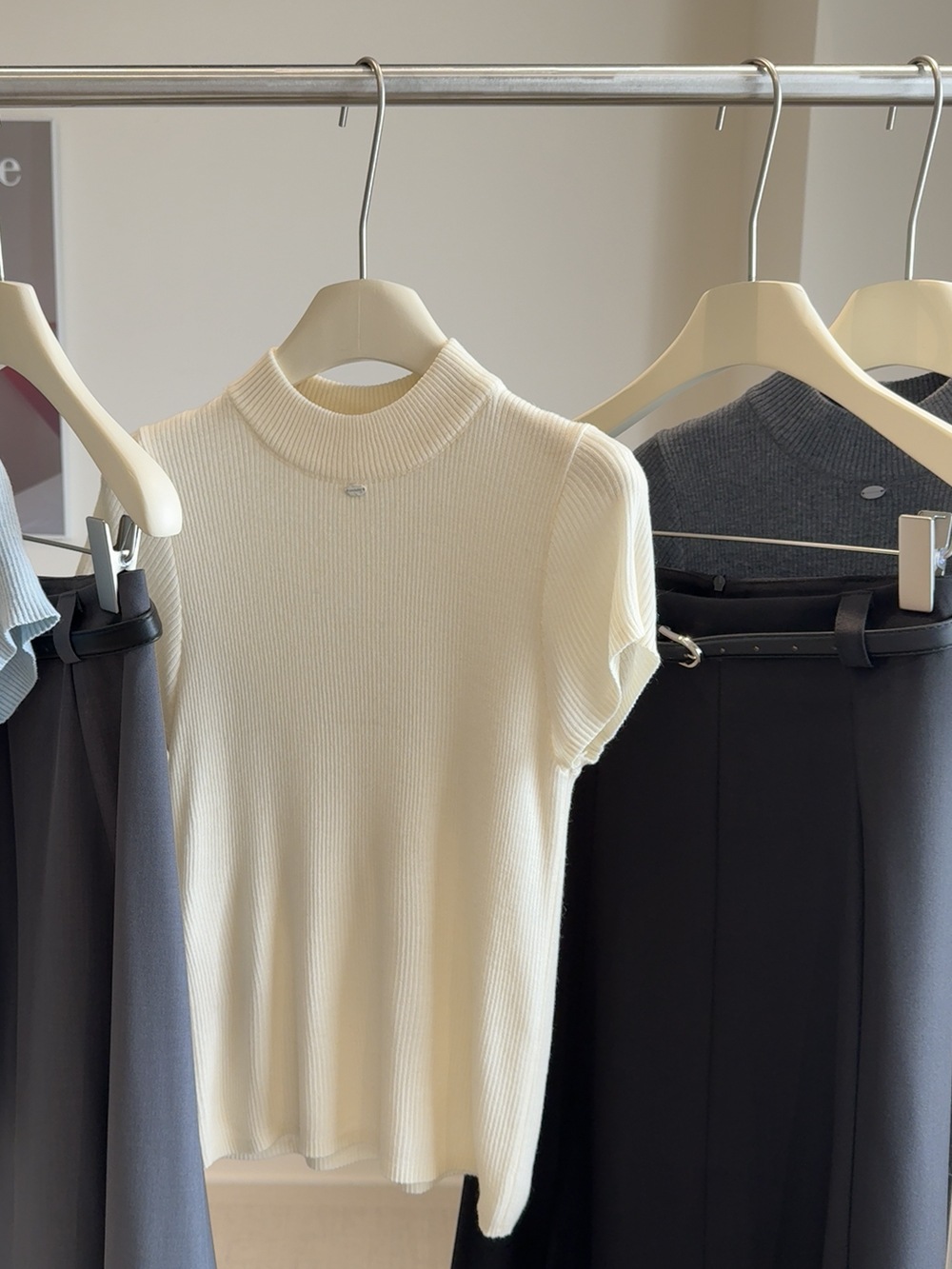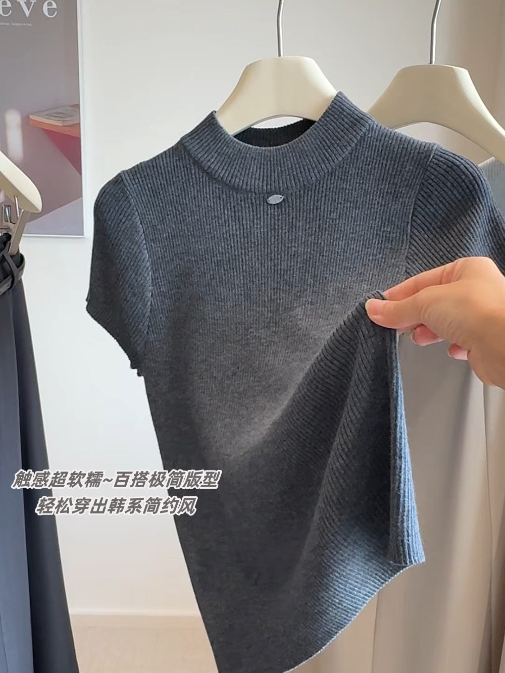 하프 터틀넥 니트 오른쪽 어깨 반팔 여성 2025 신상 초가을 하이엔드 슬림하고 스타일리시한 이너 레이어드 셔츠 탑스토어 가기