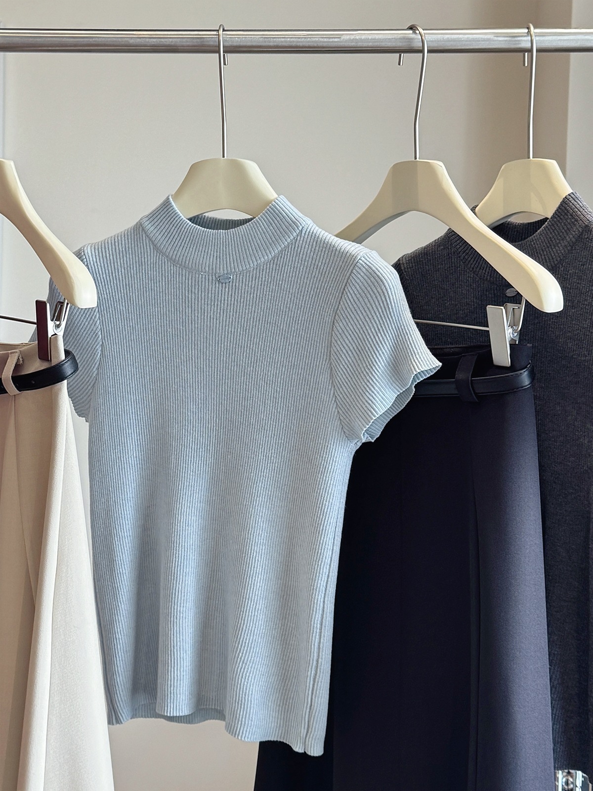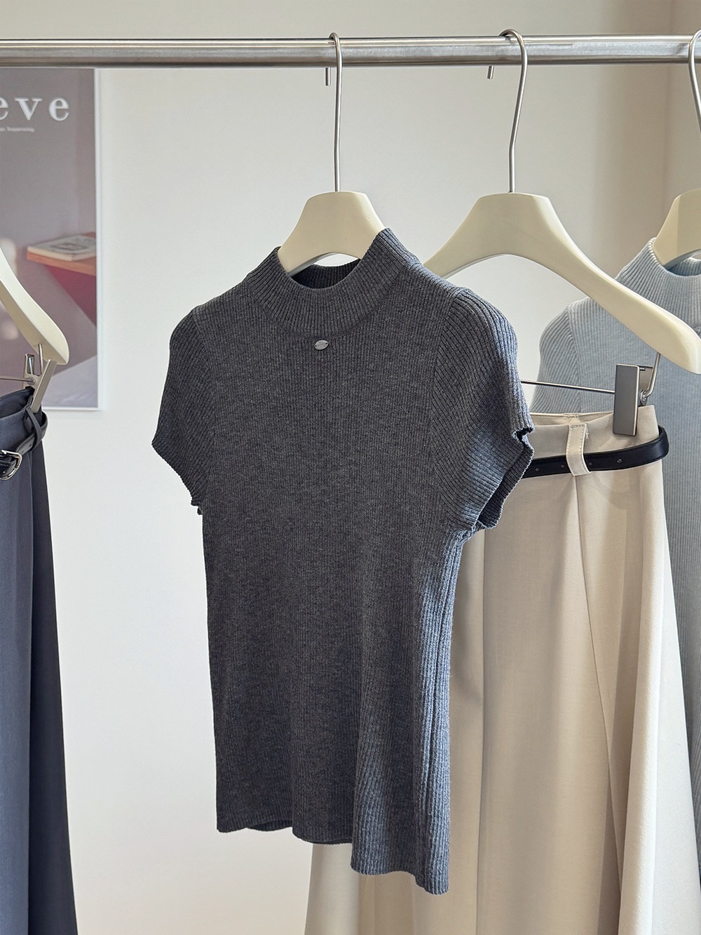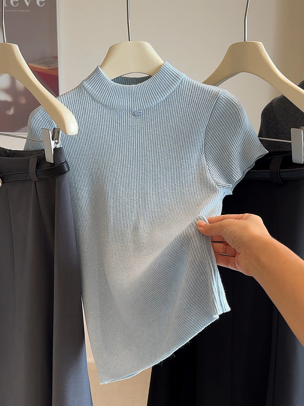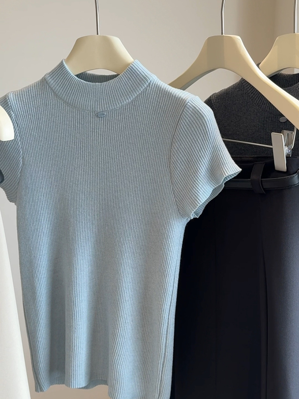하프 터틀넥 니트 오른쪽 어깨 반팔 여성 2025 신상 초가을 하이엔드 슬림하고 스타일리시한 이너 레이어드 셔츠 탑스토어 가기