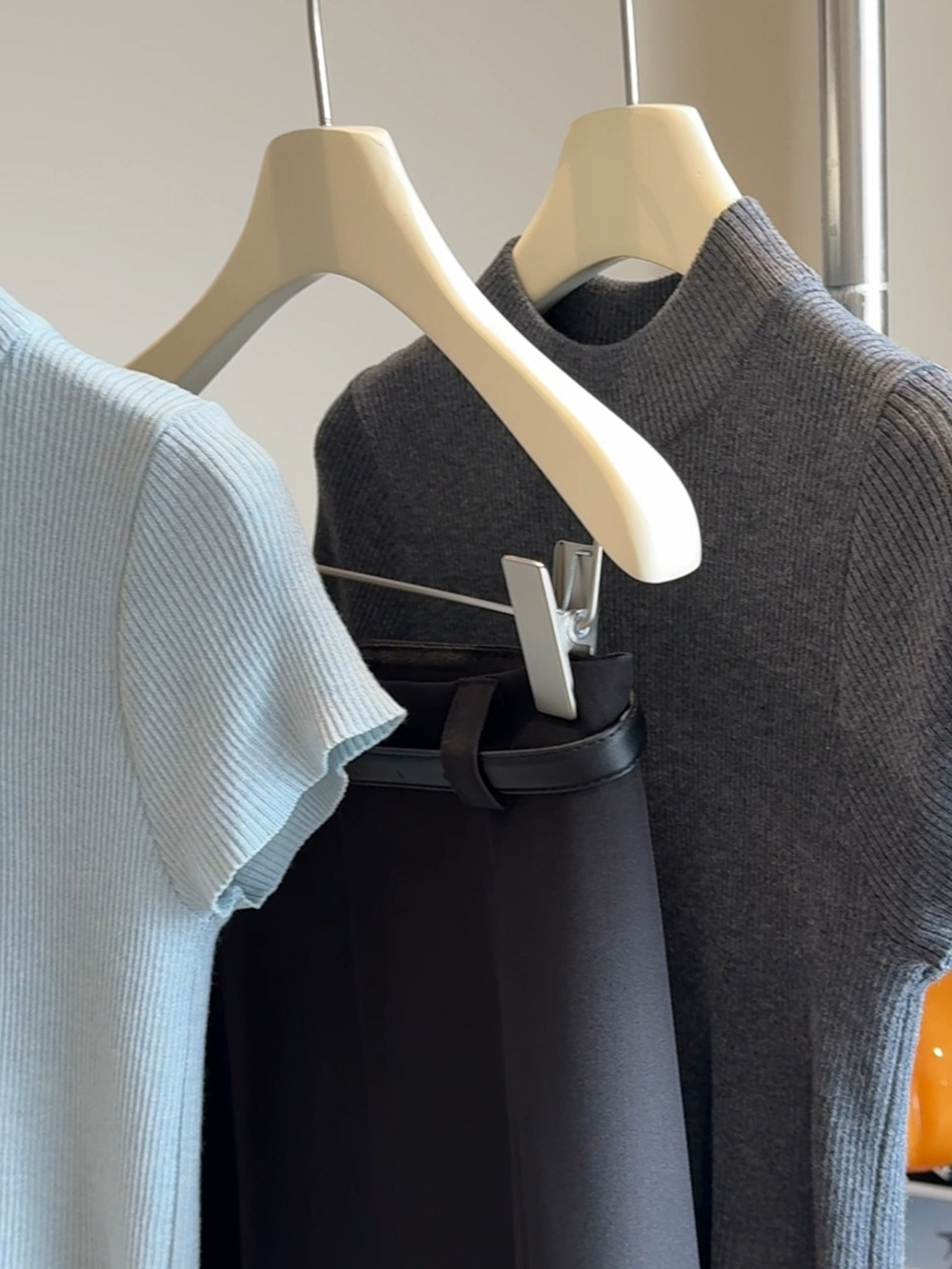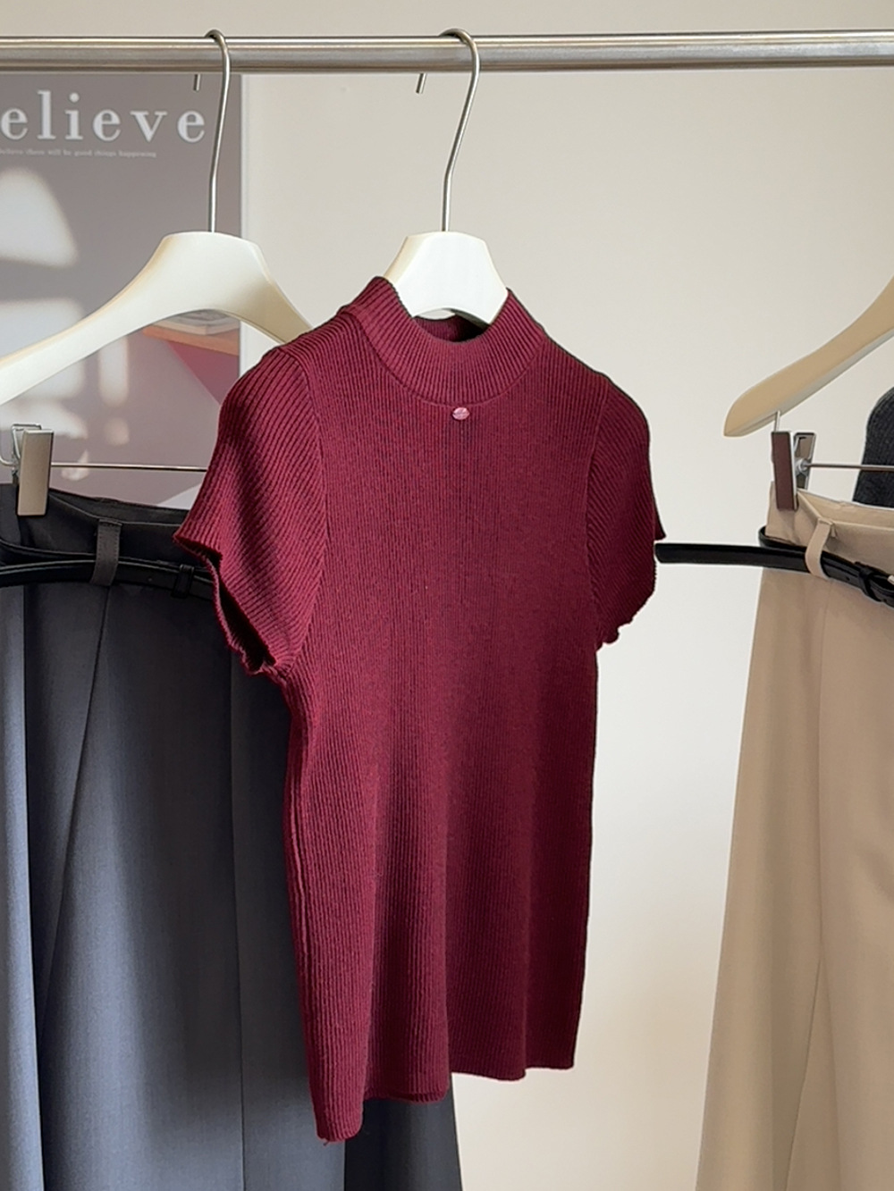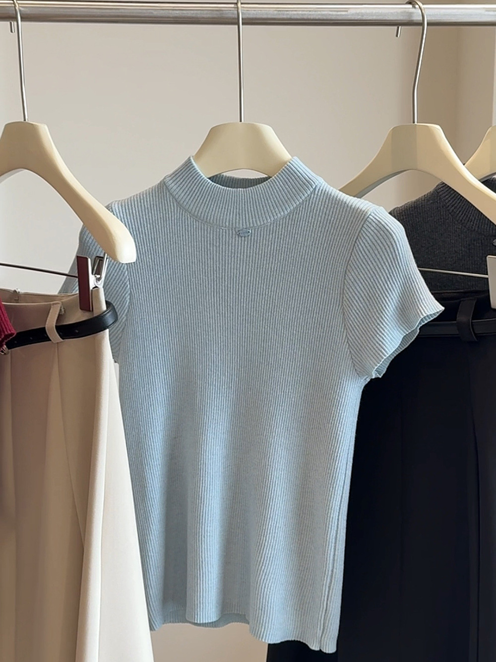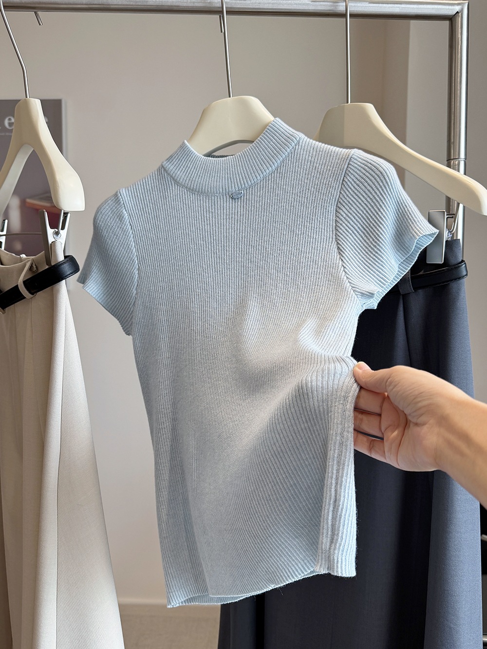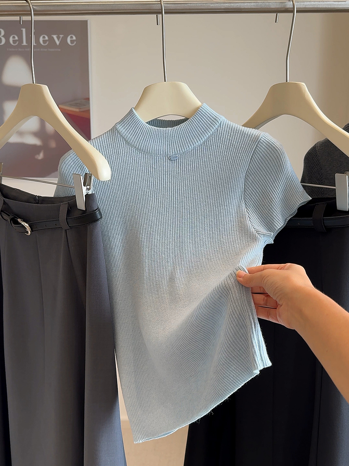 하프 터틀넥 니트 오른쪽 어깨 반팔 여성 2025 신상 초가을 하이엔드 슬림하고 스타일리시한 이너 레이어드 셔츠 탑스토어 가기