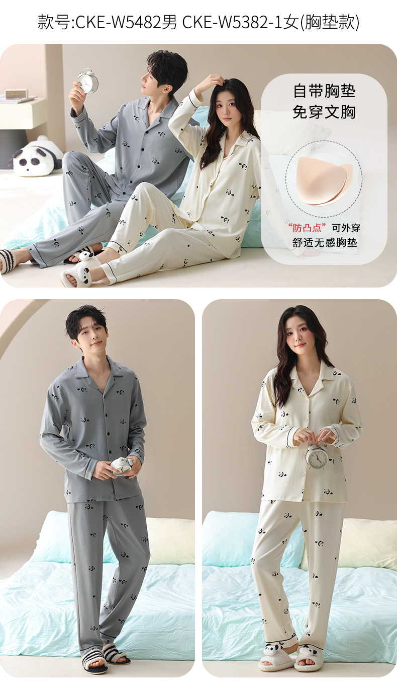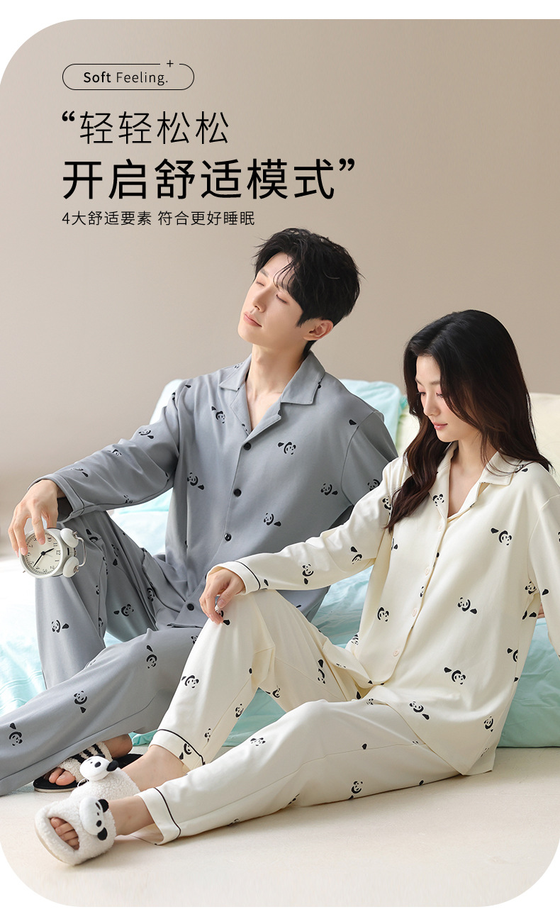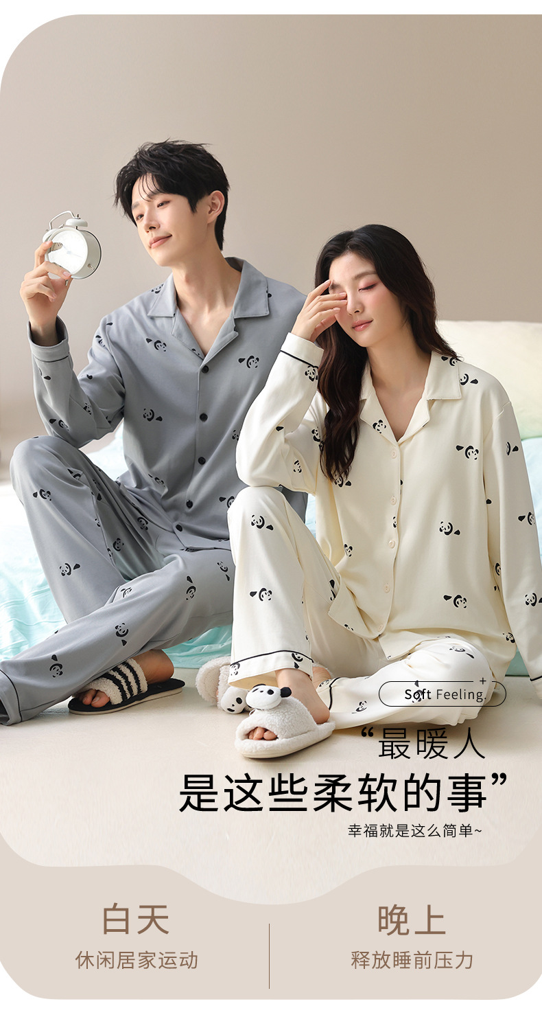 커플의 새로운 잠옷, 가정복, 남성용 긴팔 바지, 여름 순면 가디건, 캐주얼하고 멋진 여성용 슈트스토어 가기