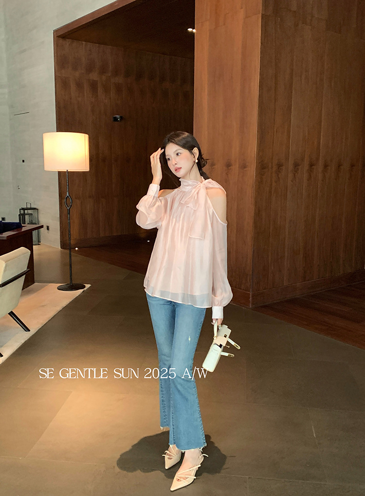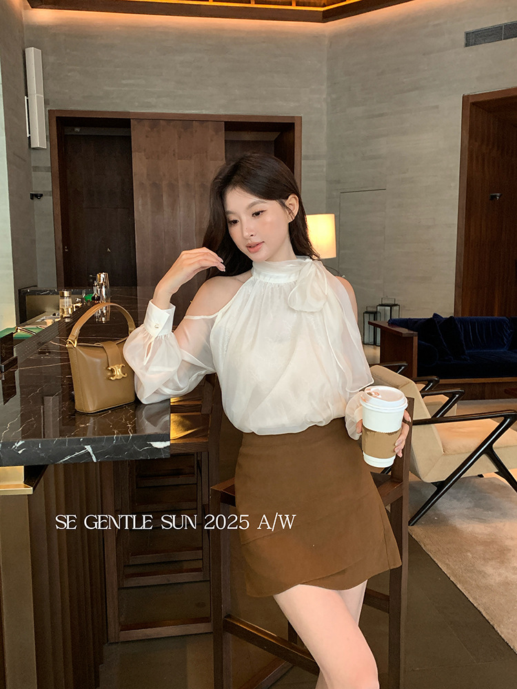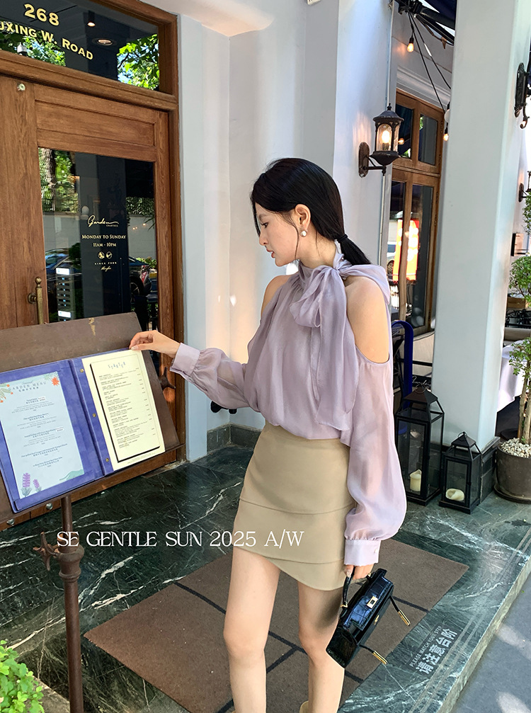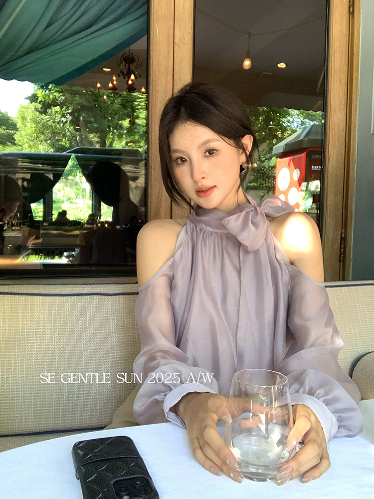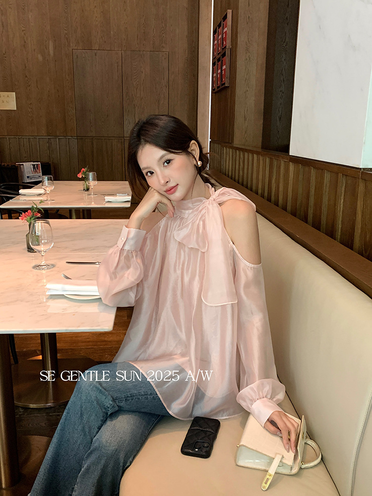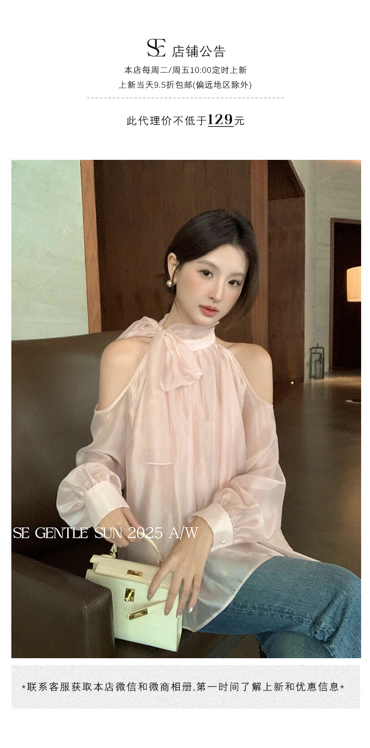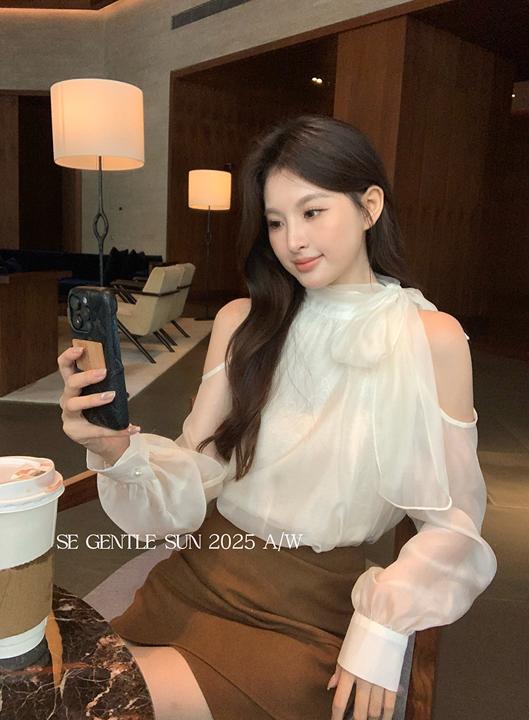 Xiuxixi 2025 가을 화이트 라벨 한국 스타일 다목적 기질 레이스 업 쉬폰 긴팔 셔츠 여성상의 89486스토어 가기