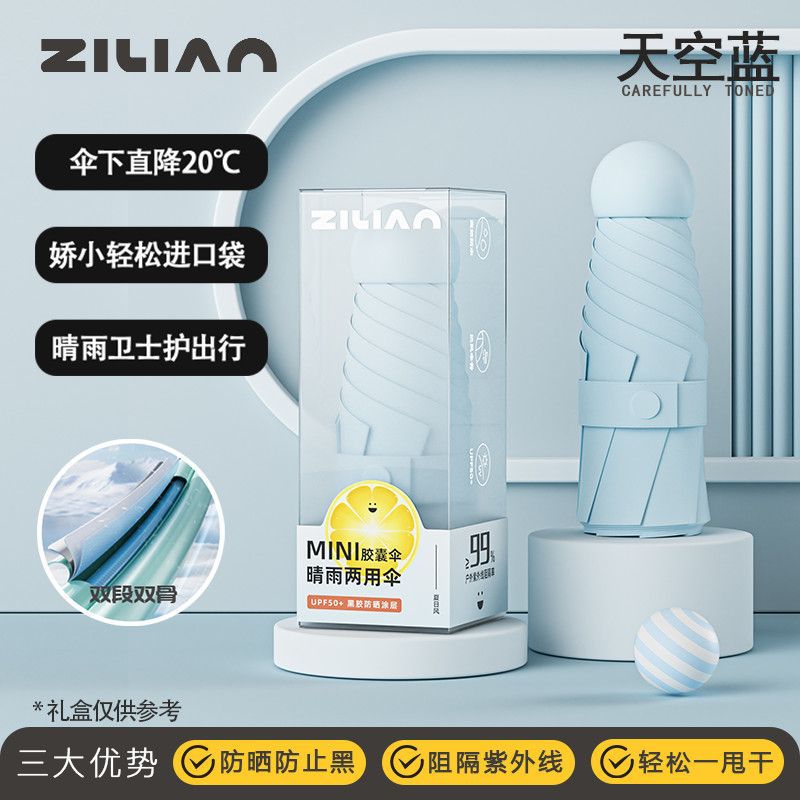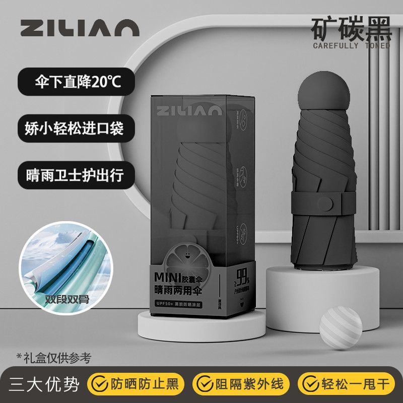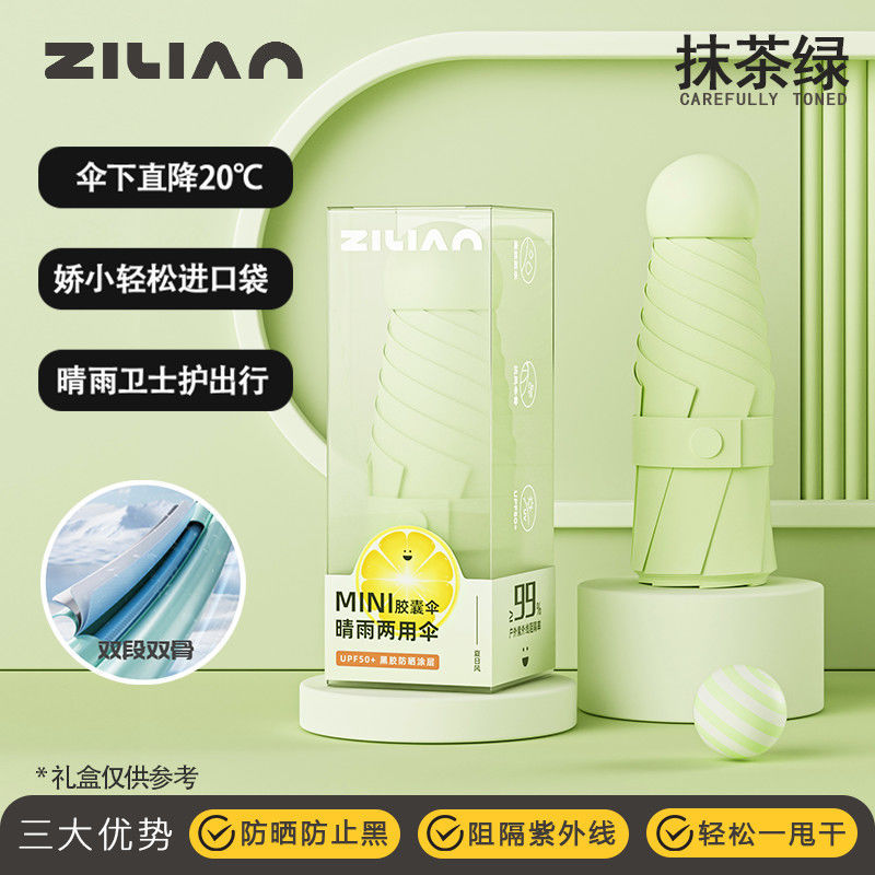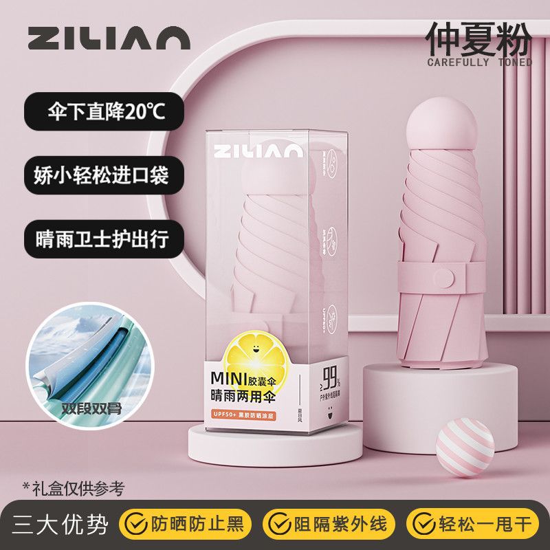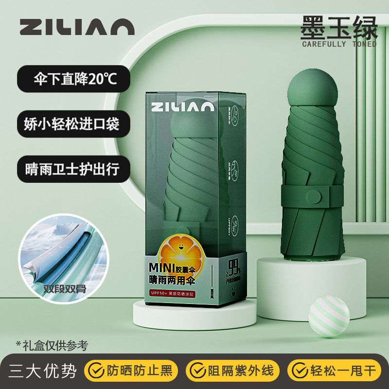 캡슐 태양 우산 포켓 태양 보호 UV 차양 우산 소형 휴대용 이중 목적 여성 미니 50% off 스택