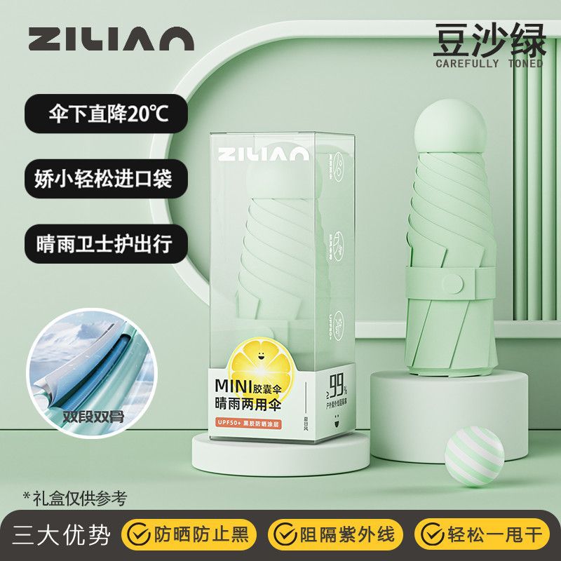캡슐 태양 우산 포켓 태양 보호 UV 차양 우산 소형 휴대용 이중 목적 여성 미니 50% off 스택스토어 가기