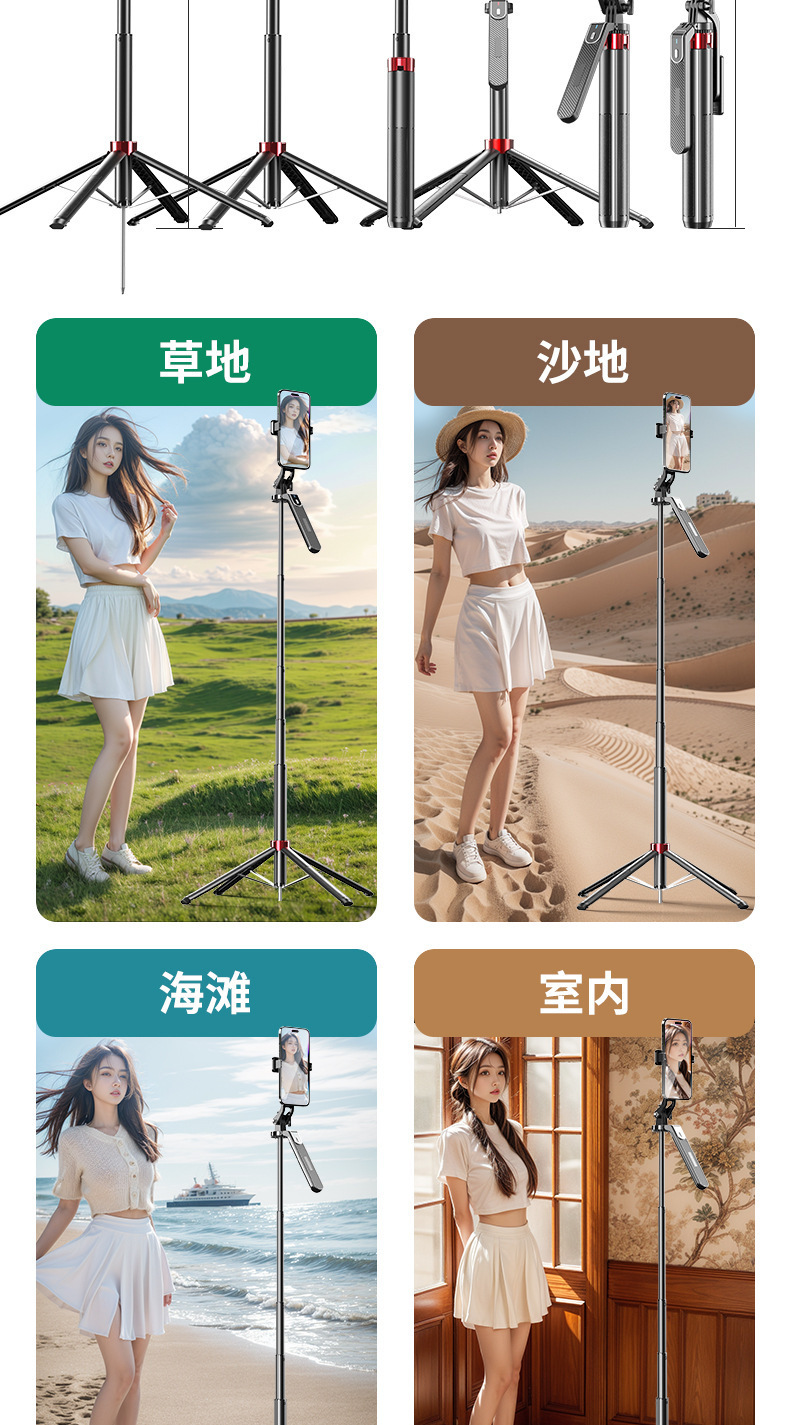 국경 간 새로운 P185-N 휴대 전화 셀카 스틱 라이브 방송 바닥 스탠딩 4 다리 삼각대 사진 촬영을위한 지상 고정 장치가있는 휴대용 손떨림 방지스토어 가기