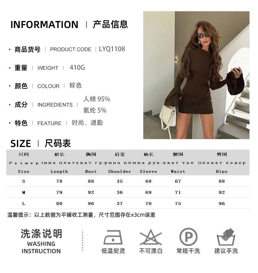 2025 가을, 겨울 새로운 벨 슬리브 라운드 넥 슬림 드레스 여성 니트 닦았 따뜻한 패션 유럽과 미국의 국경스토어 가기