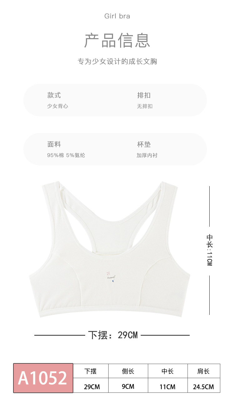 발달기 초등학생을 위한 아동용 스포츠 브라, I자형 백 조끼, 여아 1단계 브라, 큰 어린이 여아 여름
