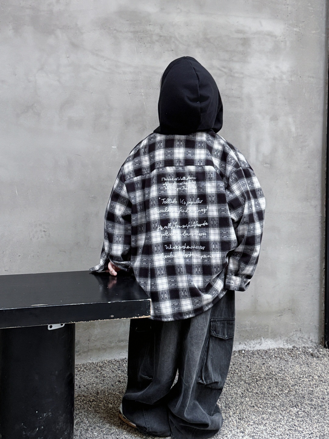아동용 한국식 격자 무늬 코트 카디건 중형 및 대형 아동용 후드 셔츠 소년 캐주얼 루즈 긴팔 가을 봄 가을 유행