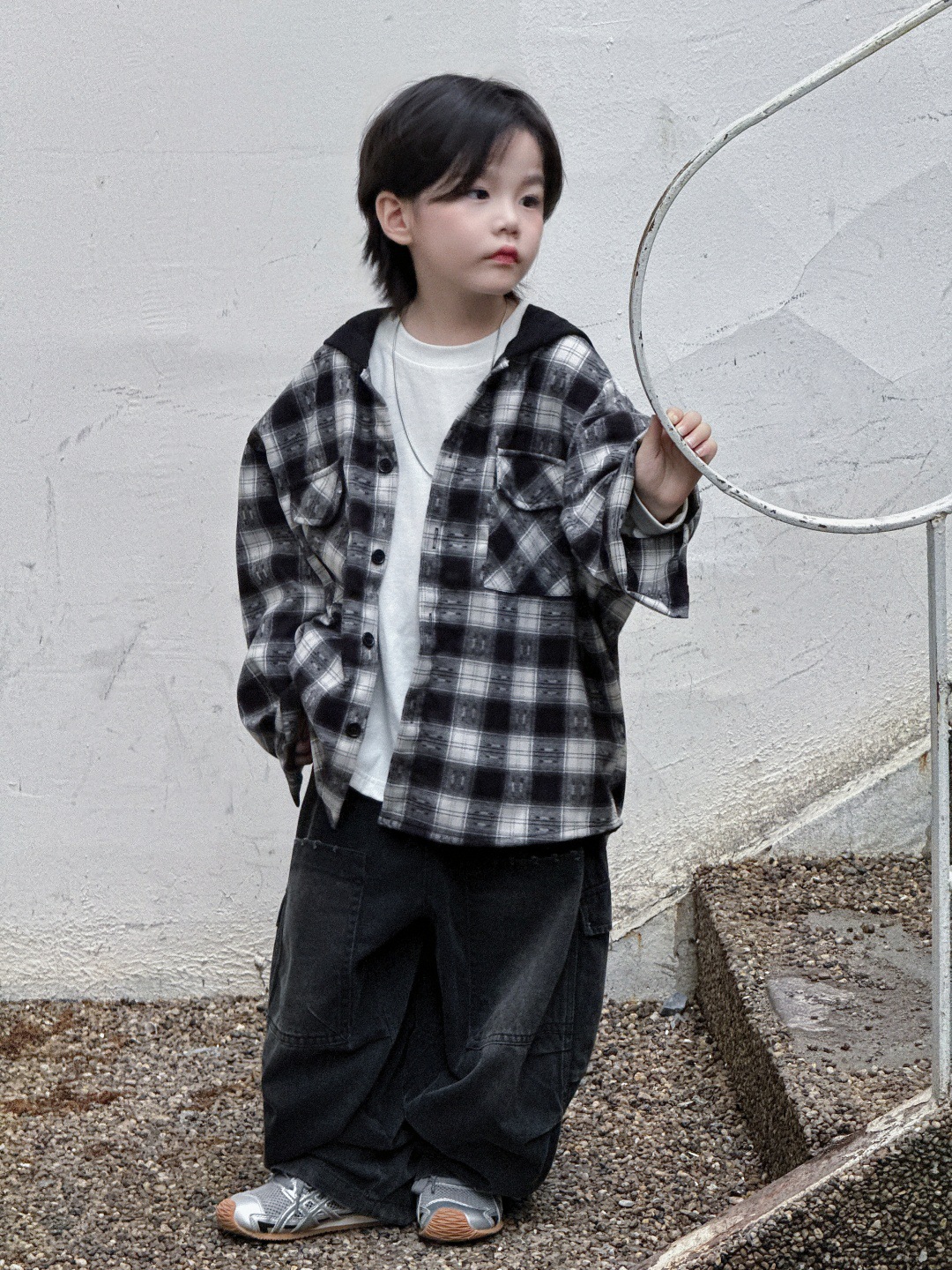 아동용 한국식 격자 무늬 코트 카디건 중형 및 대형 아동용 후드 셔츠 소년 캐주얼 루즈 긴팔 가을 봄 가을 유행스토어 가기