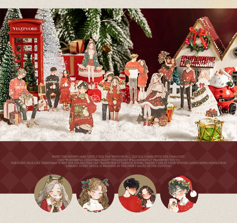 토마토 소스 캐릭터 스티커 멋진 크리스마스 밤 시리즈 낭만적 인 겨울 조경 재료 핸드북 diy 장식 콜라주
