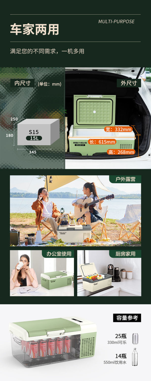 Indel S15 자동차 냉장고 자동차 홈 이중 용도 12v24v220v 범용 자동차 소형 냉장고 냉장 및 냉동스토어 가기