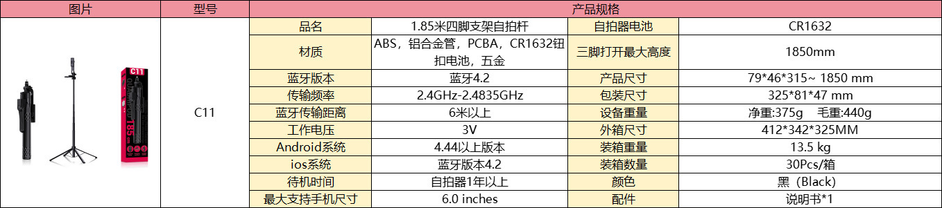 • C11 블랙 (180cm+블루투스 리모컨+알루미늄 합금 튜브+금속 용골 브래킷)