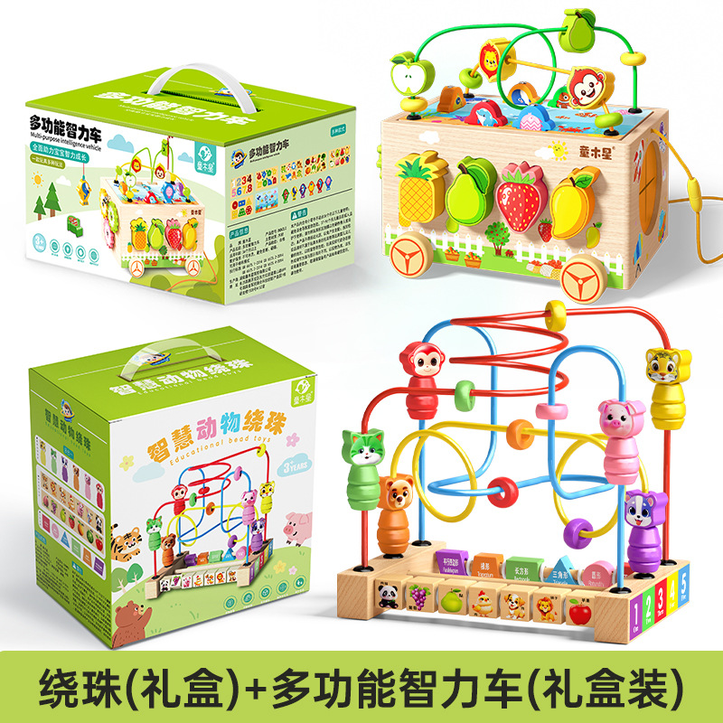 • 5-in-1 원목 유아 교육용 구슬 미로 [택배 상자 + 수납 컬러 박스] + 7-in-1 지능 개발 자동차 [택배 상자 + 수납 컬러 박스]