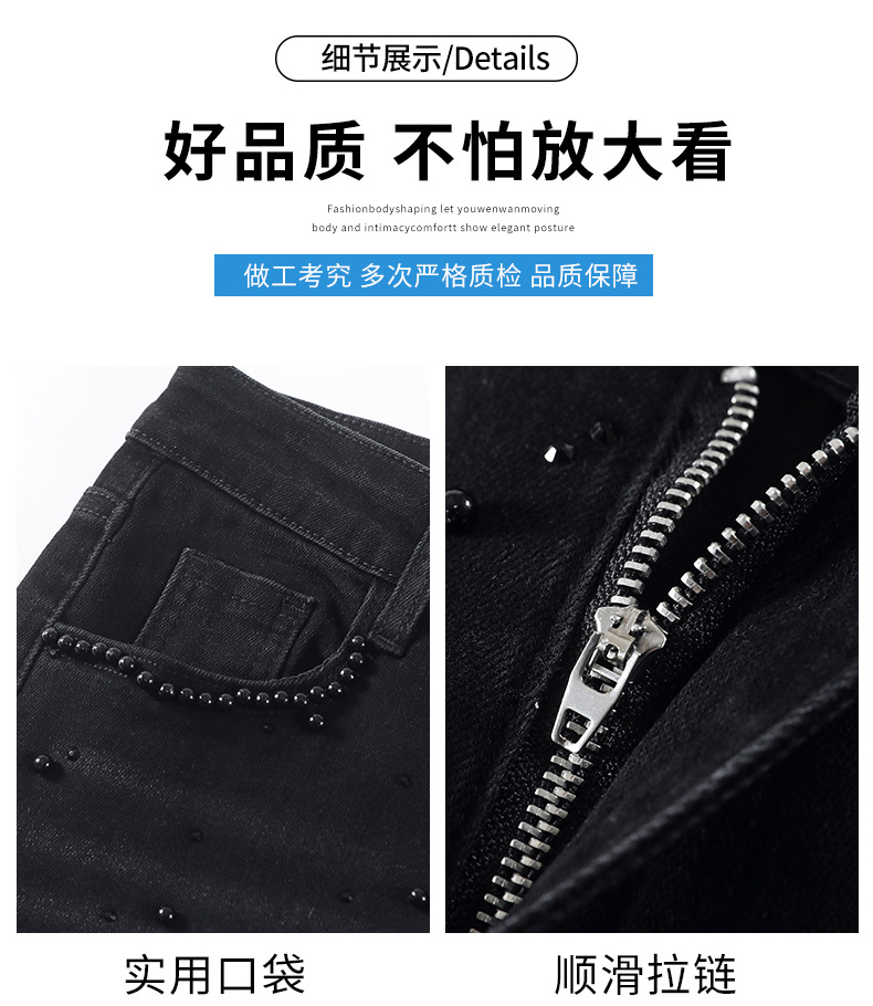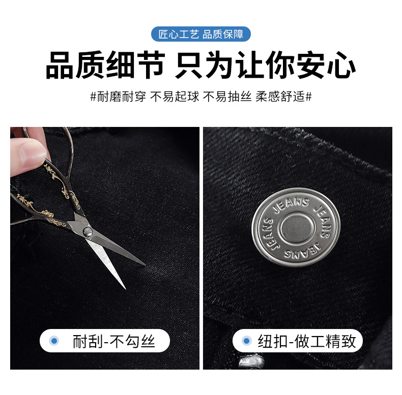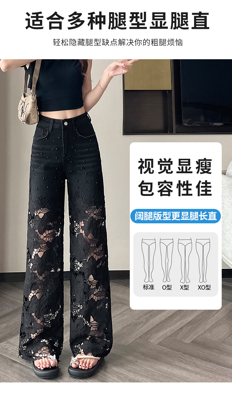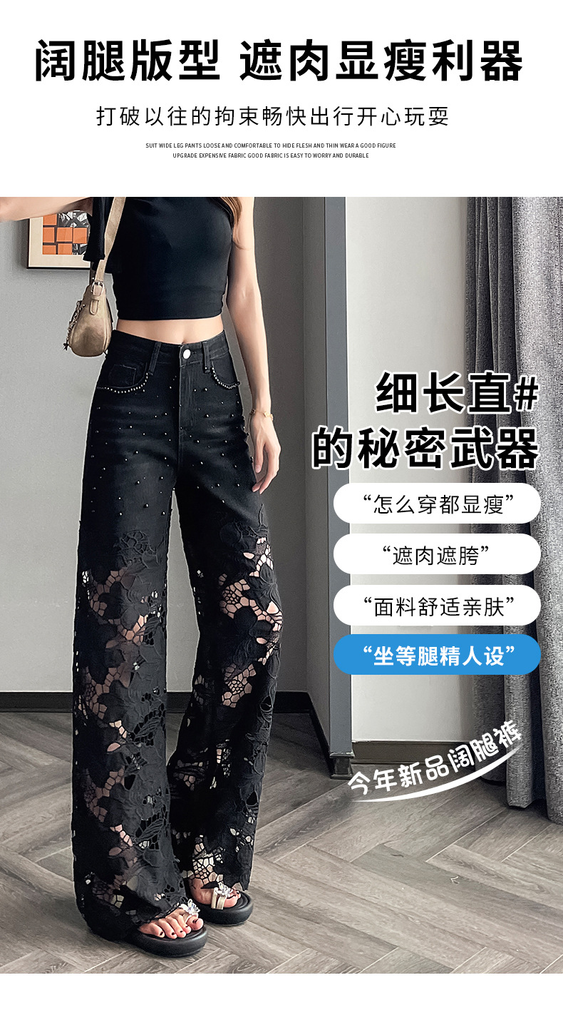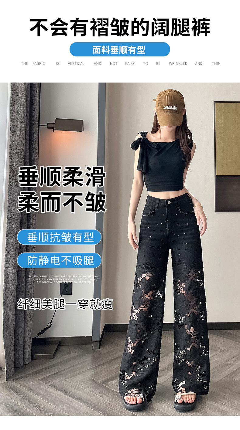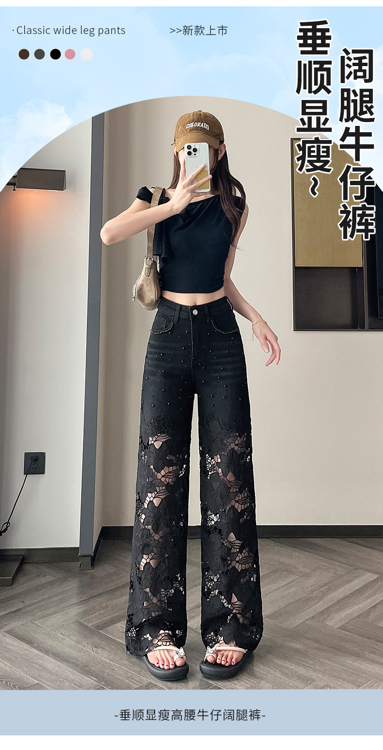 2539 # 블랙 스트레치 여름 스트레이트 팬츠 중공 패턴 패션 얇은 하이 웨이스트 찢어진 여성 청바지스토어 가기