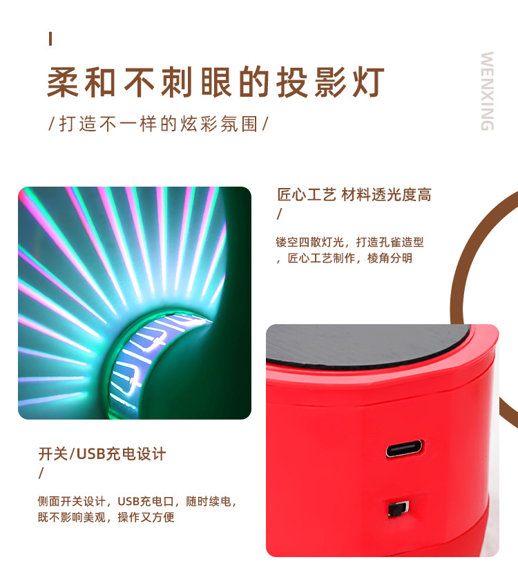 공작 프로젝션 램프 원격 제어 벽걸이 형 야간 조명 침실 머리맡 다채로운 분위기 램프 크리 에이 티브 USB 충전식 야간 조명