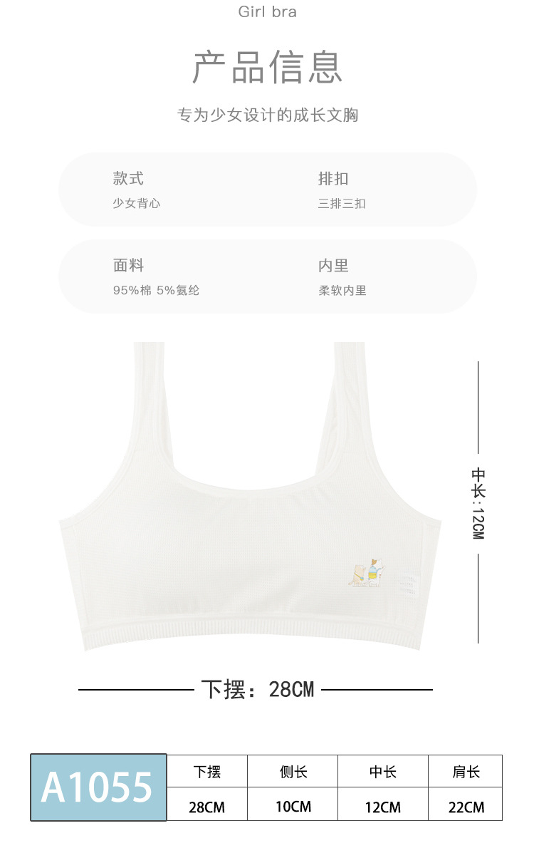 여학생 속옷, 발달기 여아 스포츠 조끼, 중학생 순면 볼록 방지 12-14-16세 브라