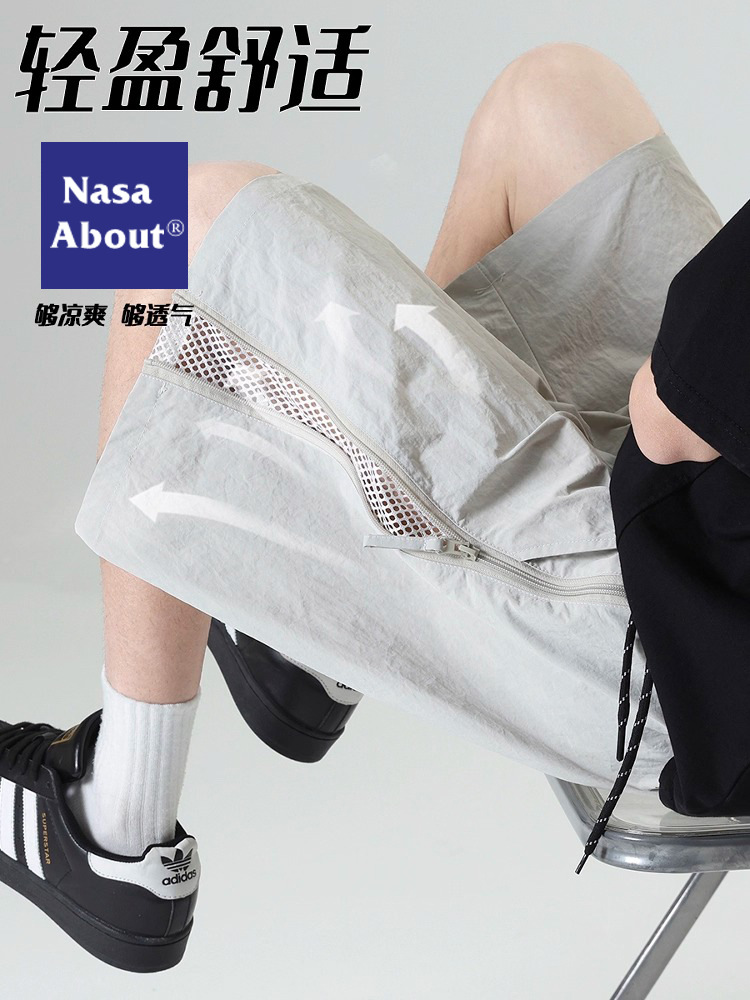 NASA 사이드 메쉬 디자인 남성용 여름 속건성 통기성 비치 팬츠 루즈하고 다재다능한 아우터 반바지스토어 가기