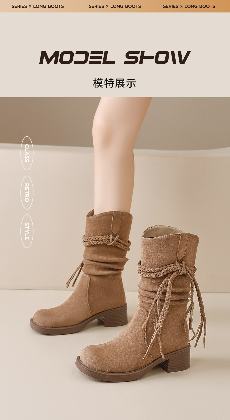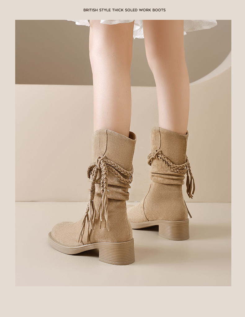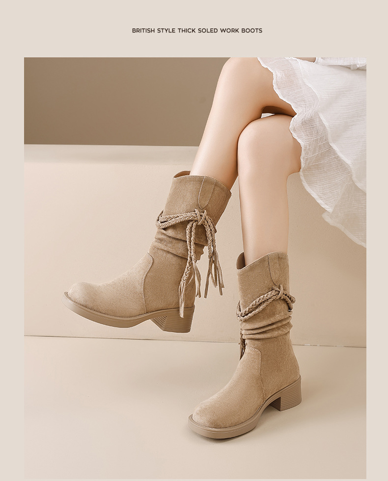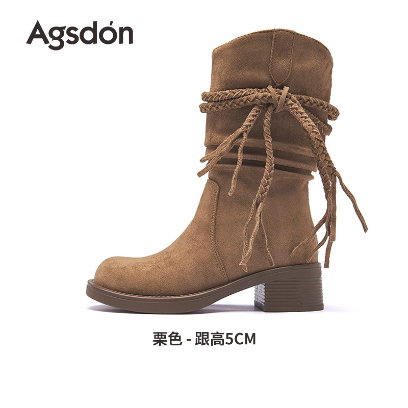 여성용 Augushiden 브라운 숏부츠 2025 신작 가을, 여름 슬리밍 부츠 레트로 황무지 스타일 술 나이트 부츠