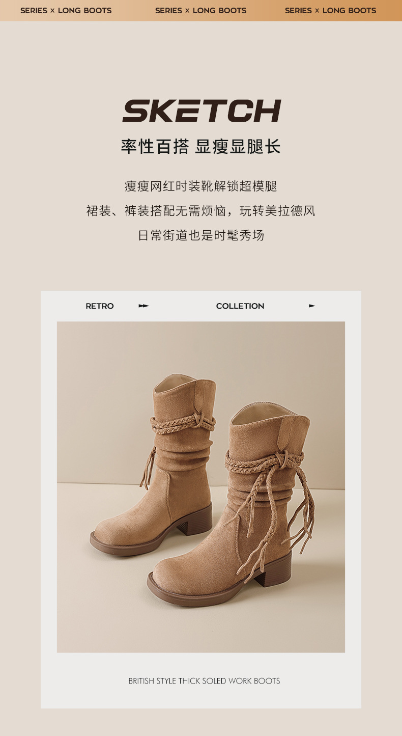 여성용 Augushiden 브라운 숏부츠 2025 신작 가을, 여름 슬리밍 부츠 레트로 황무지 스타일 술 나이트 부츠스토어 가기
