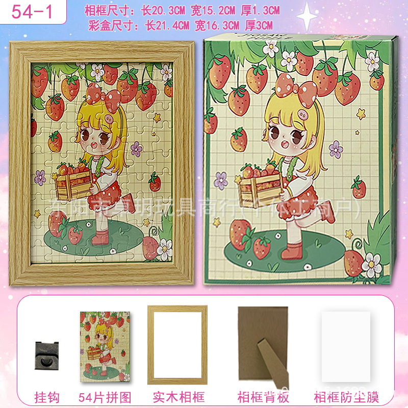 단단한 나무 사진 프레임이있는 54 조각 맞춤형 퍼즐 어린이 유치원 교육 지능 나무 아기 평면 퍼즐 조기 교육스토어 가기