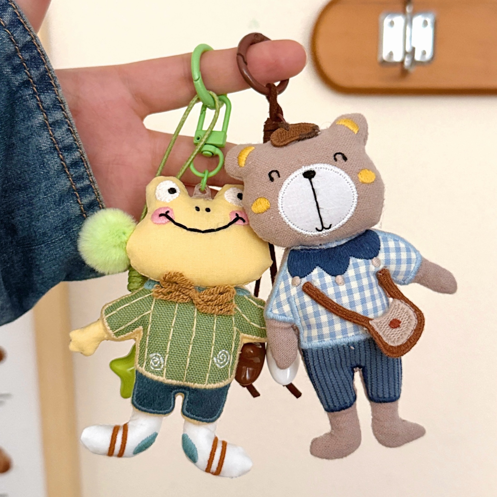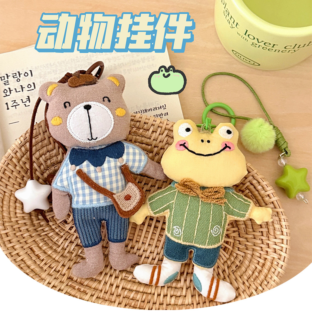 크리 에이 티브 패브릭 인형 펜던트 개구리 곰 가방 액세서리 펜던트 소녀 하트 귀여운 인형 키 체인 펜던트
