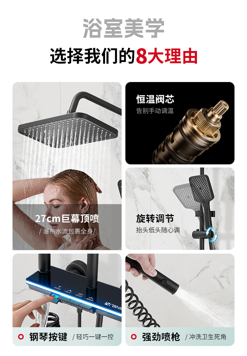 • 가족사진/고품질/항온-자유온도조절-샤워헤드/블랙