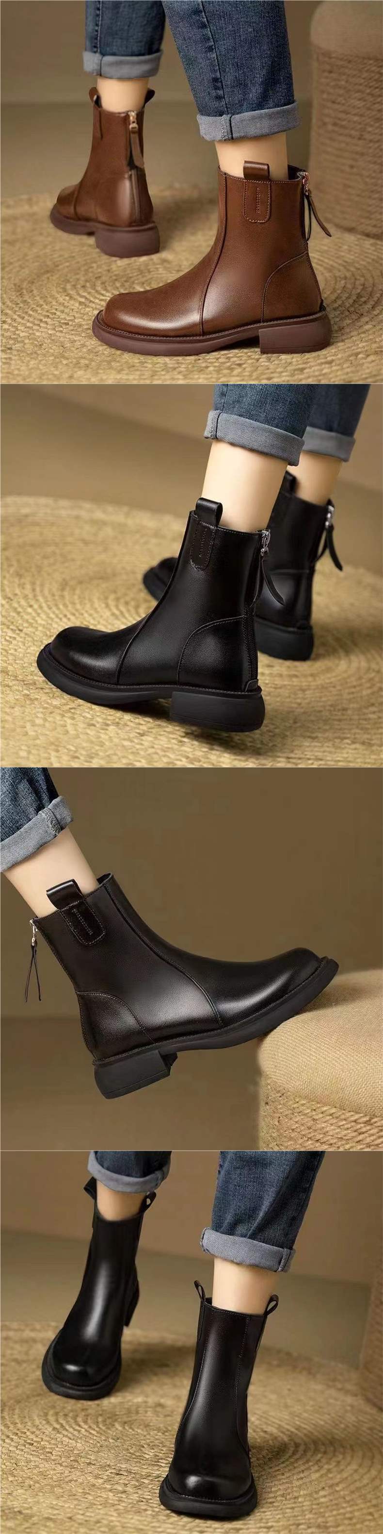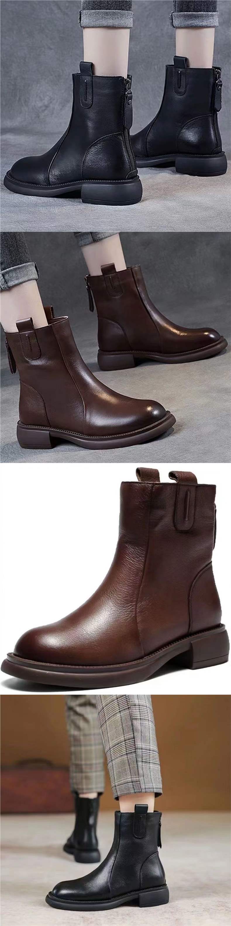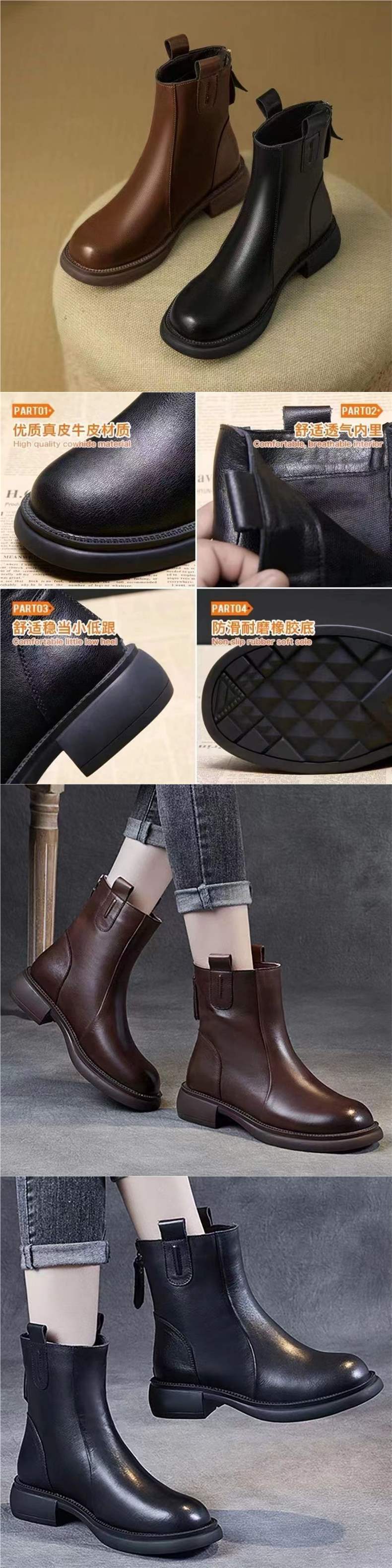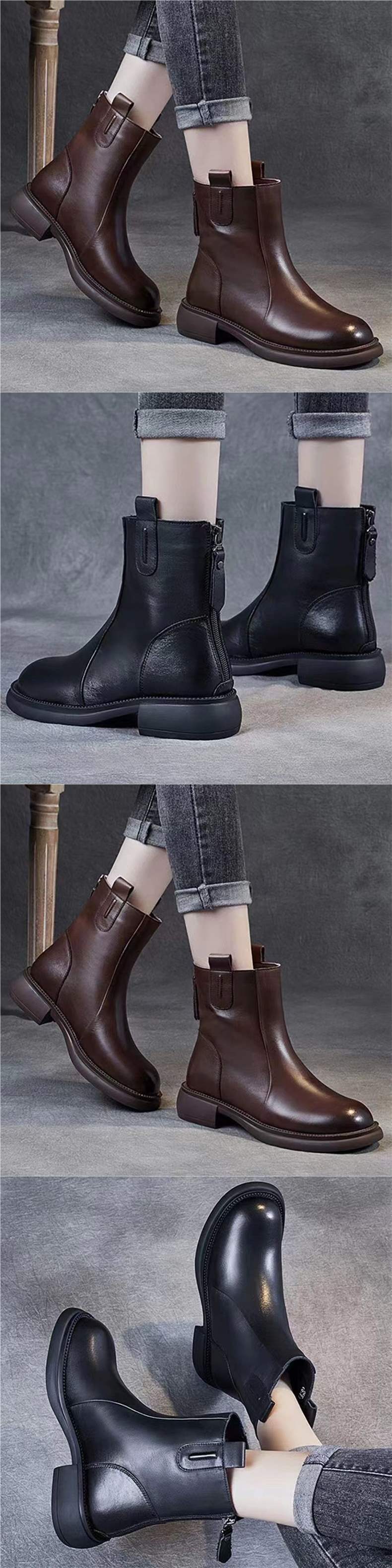 짧은 부츠 여성 2025 가을, 겨울 새로운 영국 스타일 로우 힐 작은 가죽 부츠 첼시 레트로 백 지퍼 부츠스토어 가기