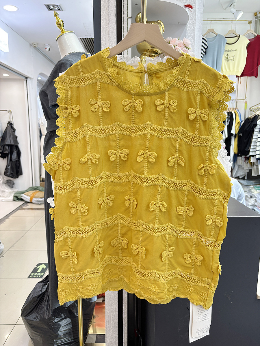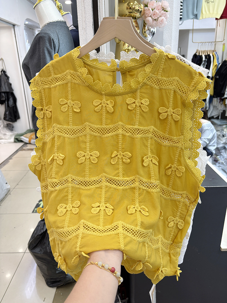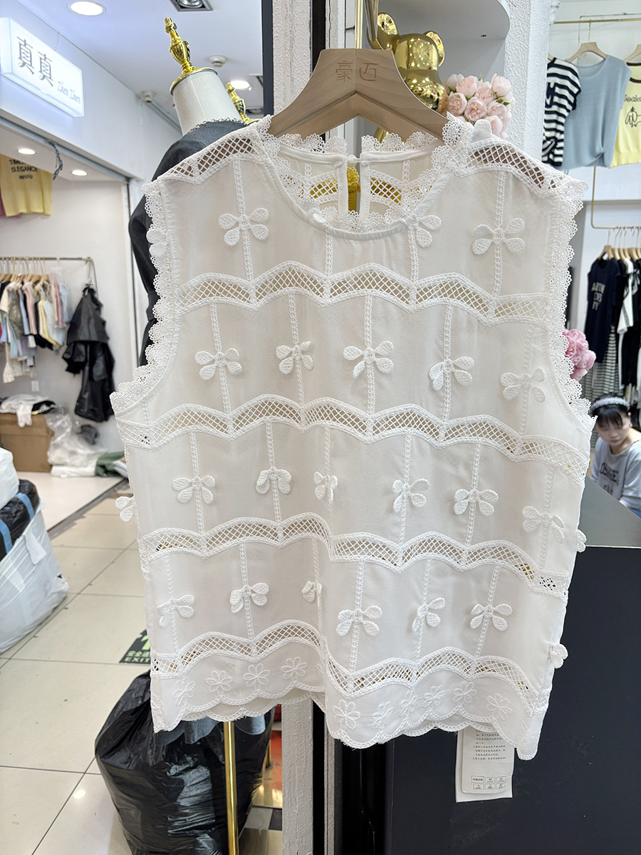 蕾丝花边镂空花朵无袖衬衫女夏季设计感轻奢减龄洋气百搭背心上衣스토어 가기