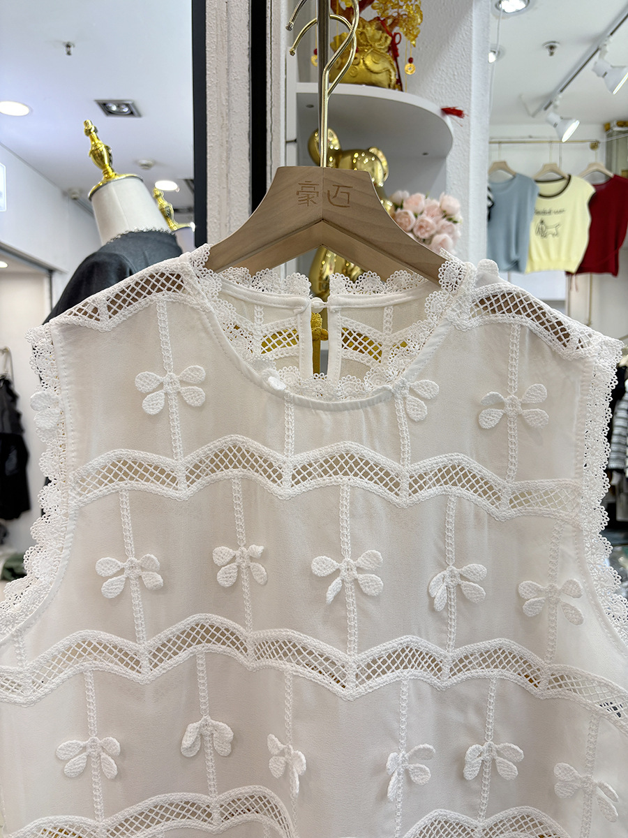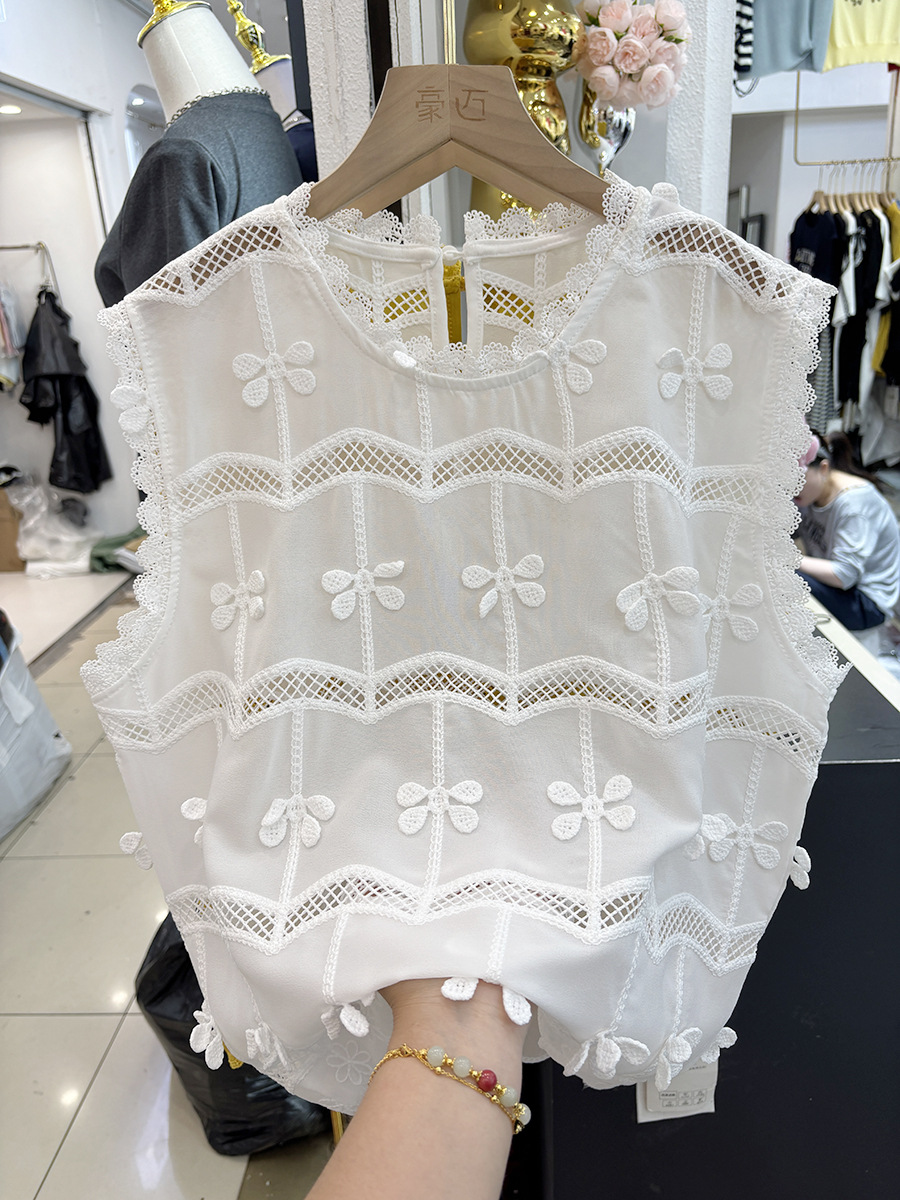 蕾丝花边镂空花朵无袖衬衫女夏季设计感轻奢减龄洋气百搭背心上衣