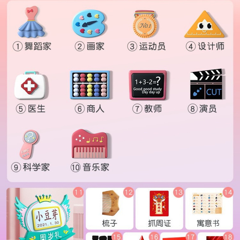 • 여아용 18개 [첫 주 10개 + 선물 8개 포함] 각인
