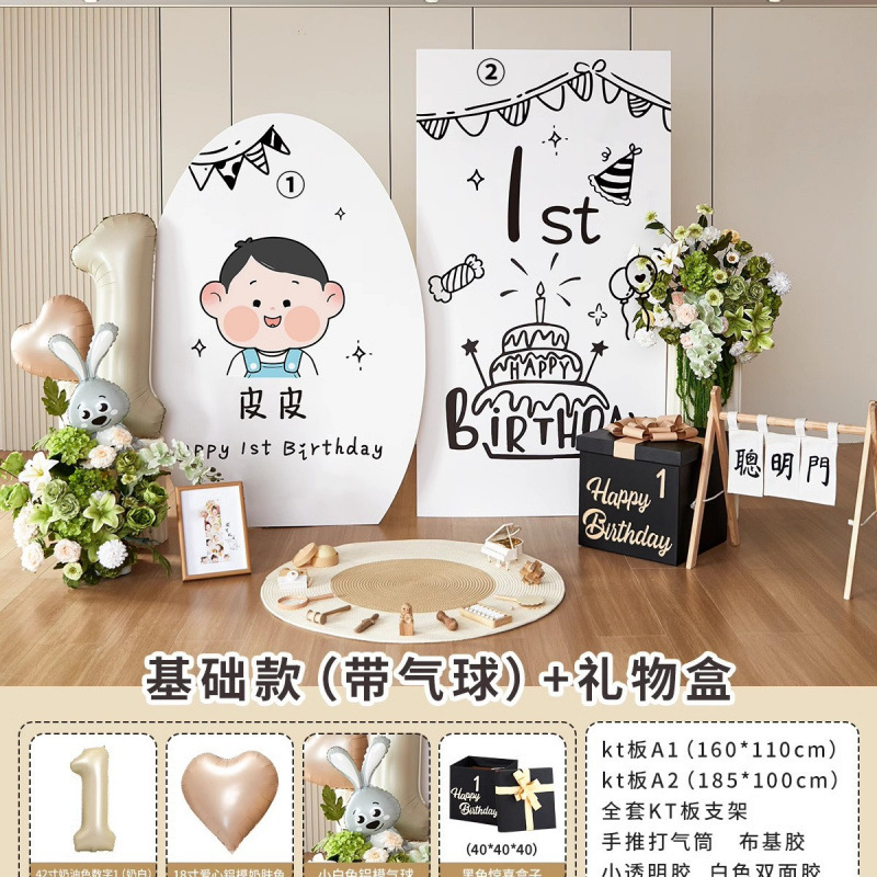아기의 첫 번째 생일 소품, 남녀 아기를 위한 생일 선물 세트, 첫 번째 생일 장식 스타일, 첫 번째 생일 소품 세트스토어 가기