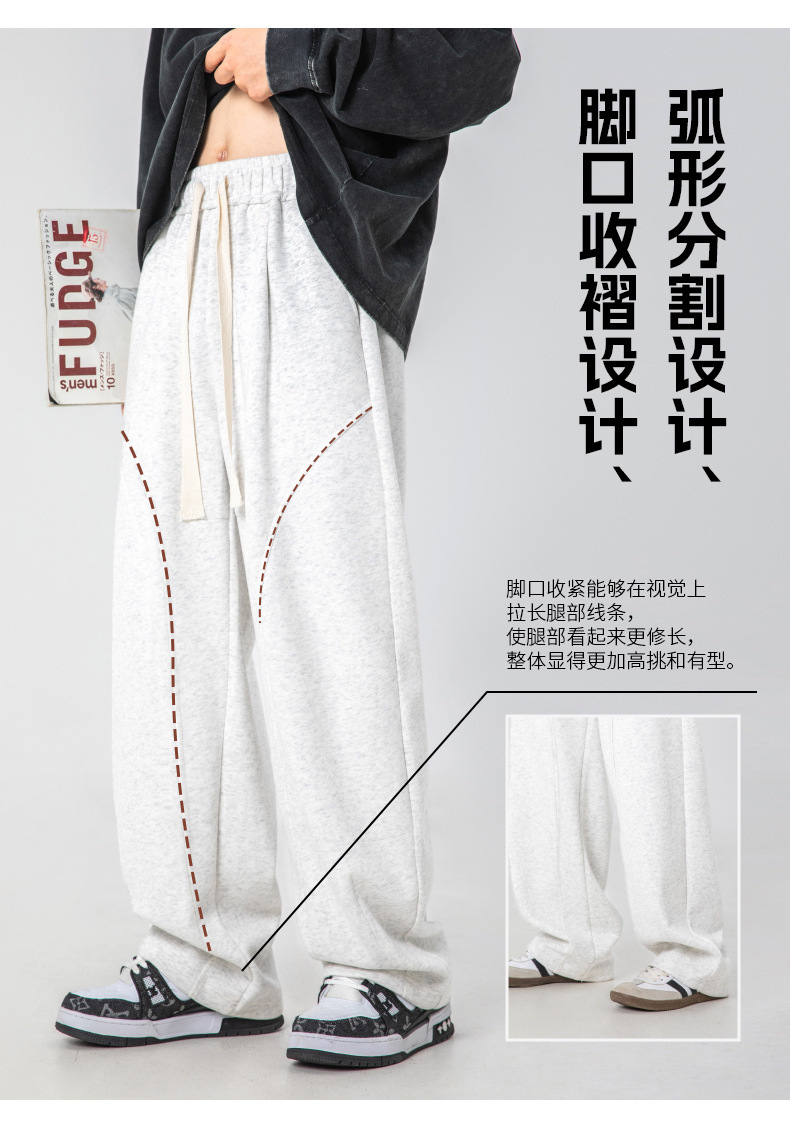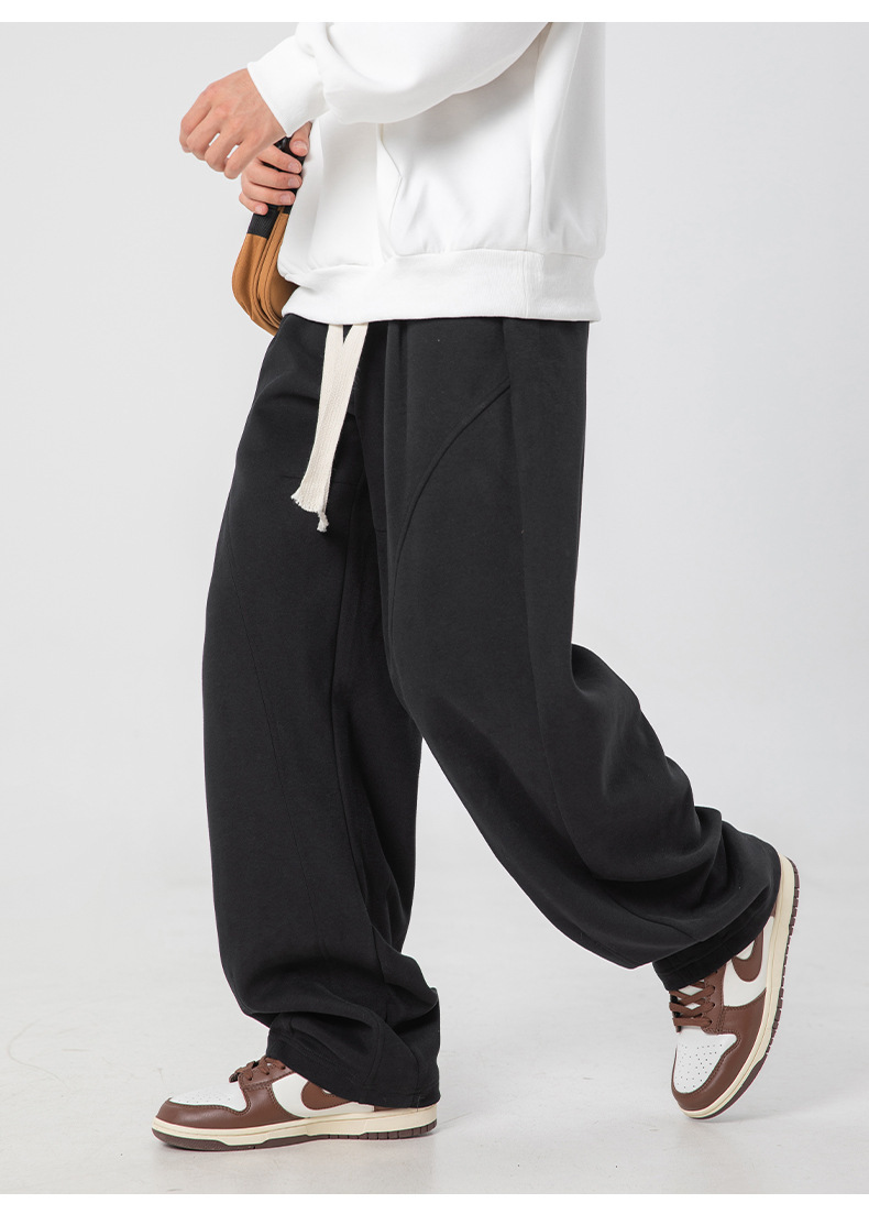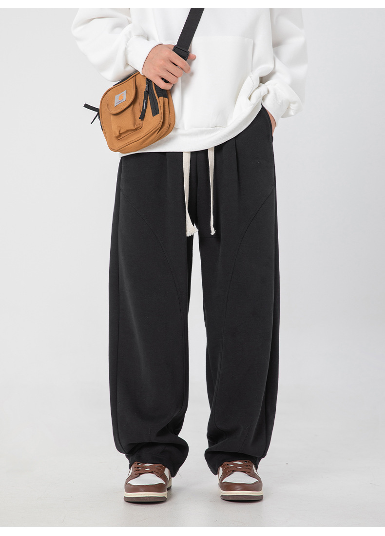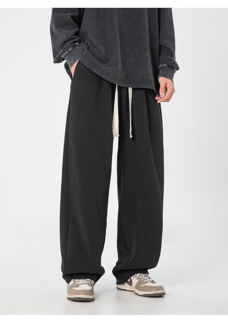 400G 헤비웨이트 캐주얼 바지 남성용 봄 신작 곡선 스웨트 팬츠 스플릿 플리츠 디자인 드레이프 루즈 팬츠