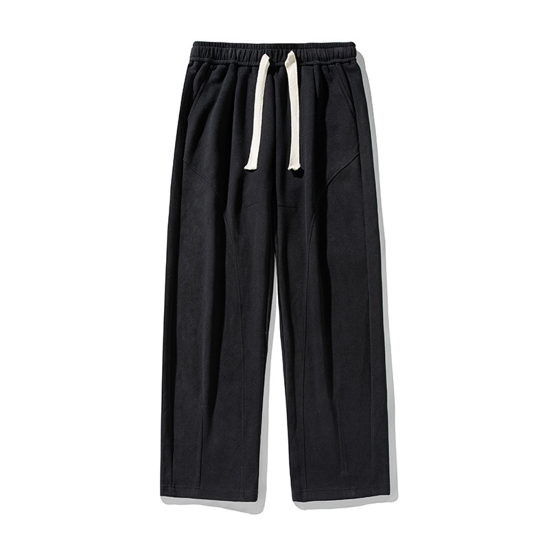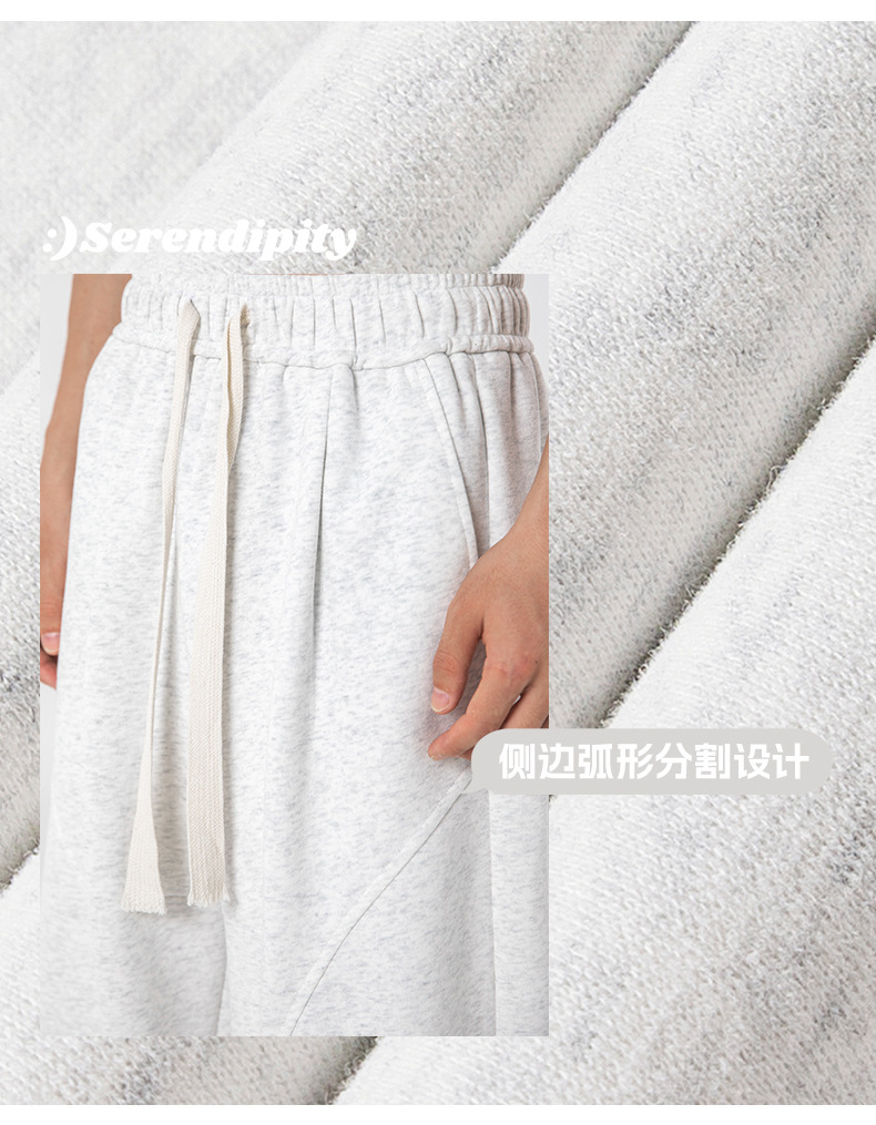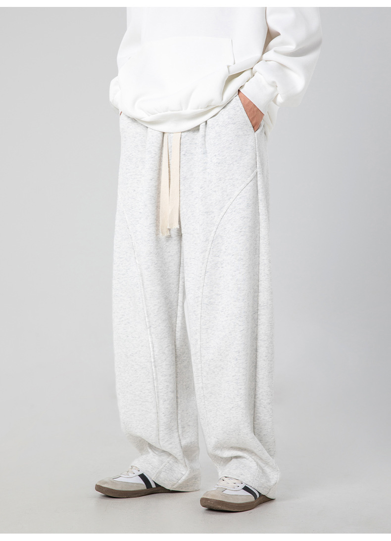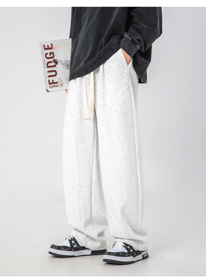 400G 헤비웨이트 캐주얼 바지 남성용 봄 신작 곡선 스웨트 팬츠 스플릿 플리츠 디자인 드레이프 루즈 팬츠