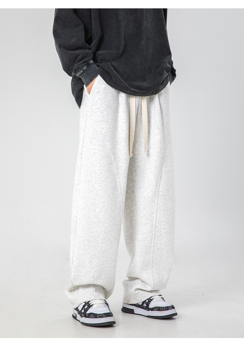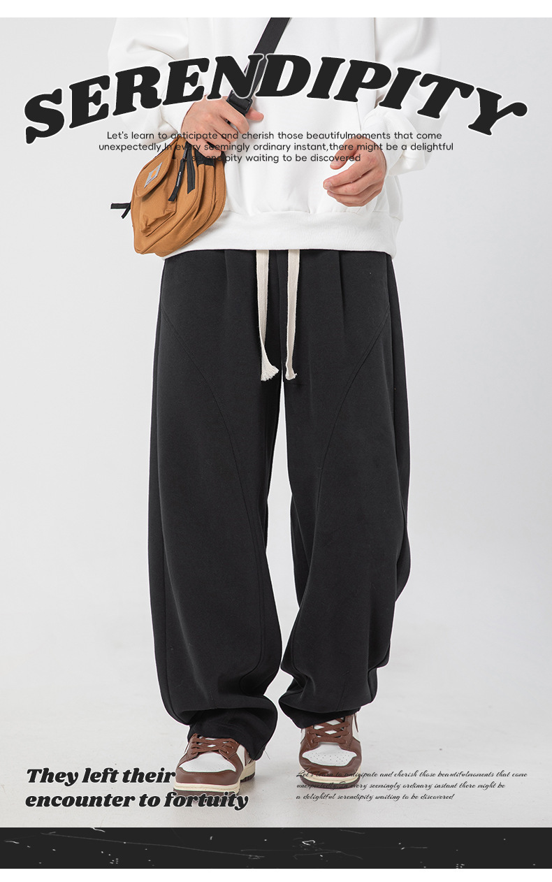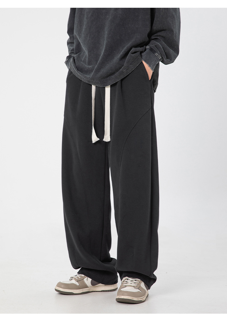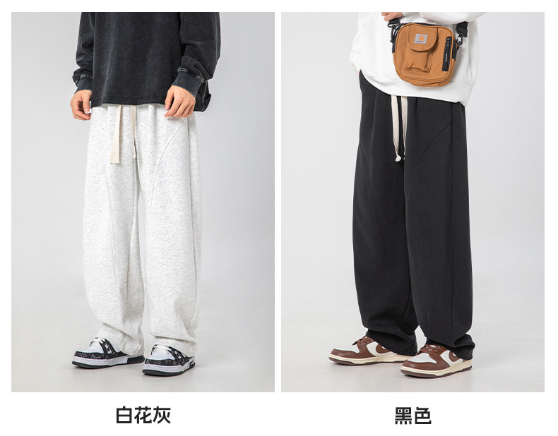 400G 헤비웨이트 캐주얼 바지 남성용 봄 신작 곡선 스웨트 팬츠 스플릿 플리츠 디자인 드레이프 루즈 팬츠스토어 가기