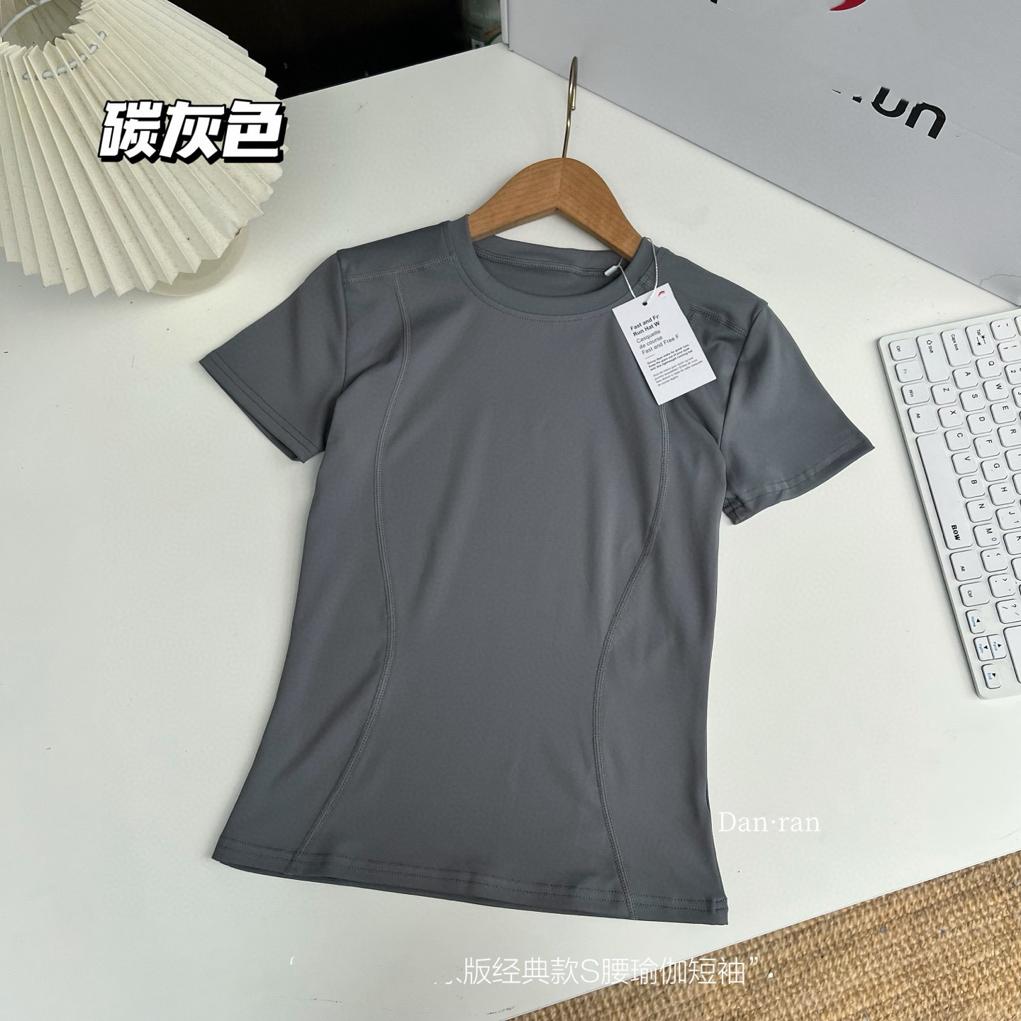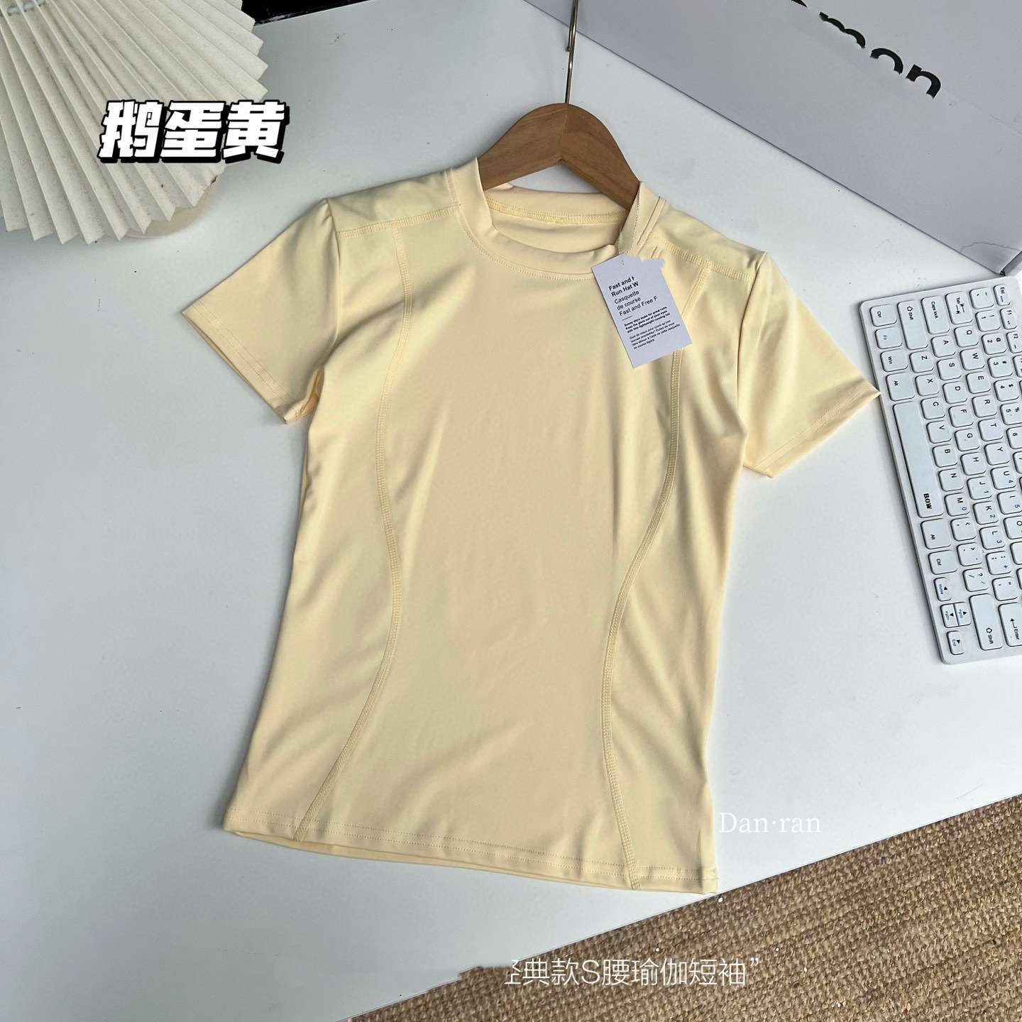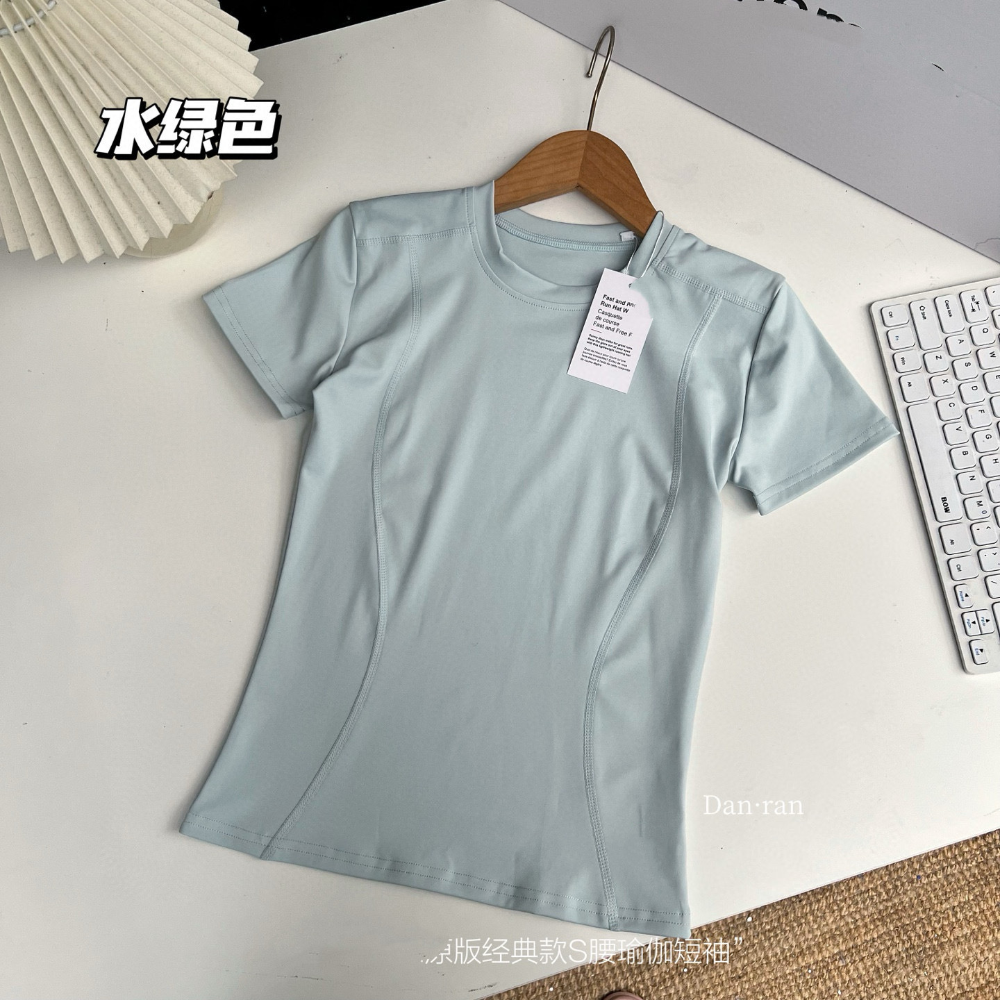 Lulu의 같은 스타일 타이트한 S 허리 요가 반팔 티셔츠 여성 여름 스포츠 피트니스 러닝 탑 라운드 넥 캔디 컬러스토어 가기
