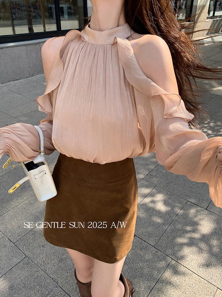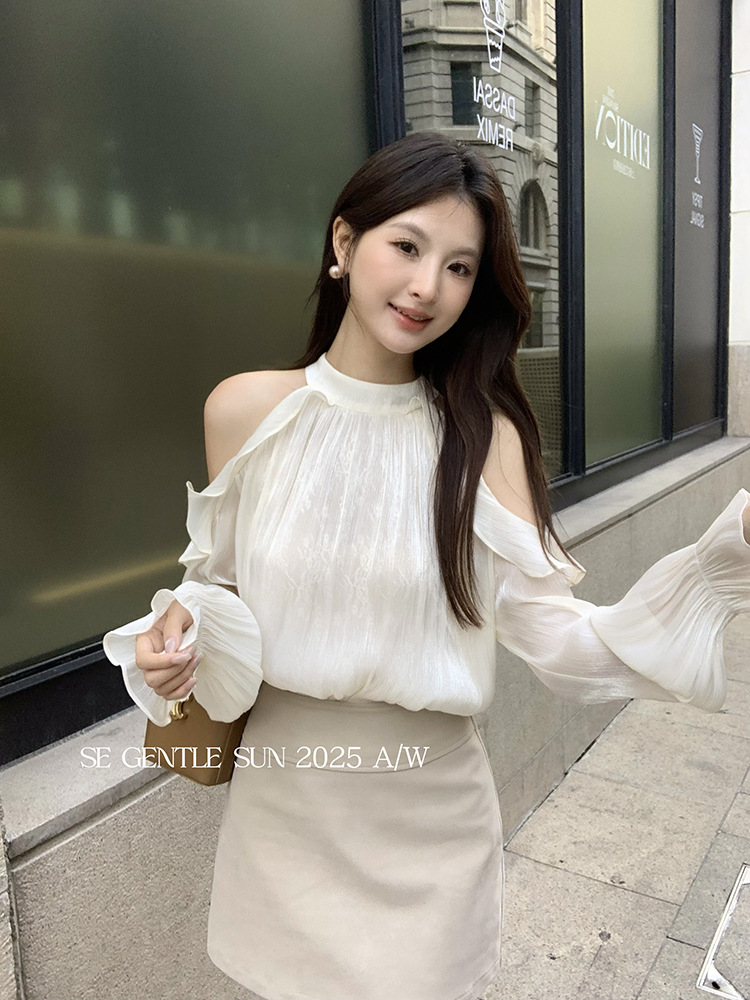 Xiuxixi 2025 가을 화이트 라벨 한국어 버전 다목적 기질 러플 쉬폰 긴팔 셔츠 여성상의 89505