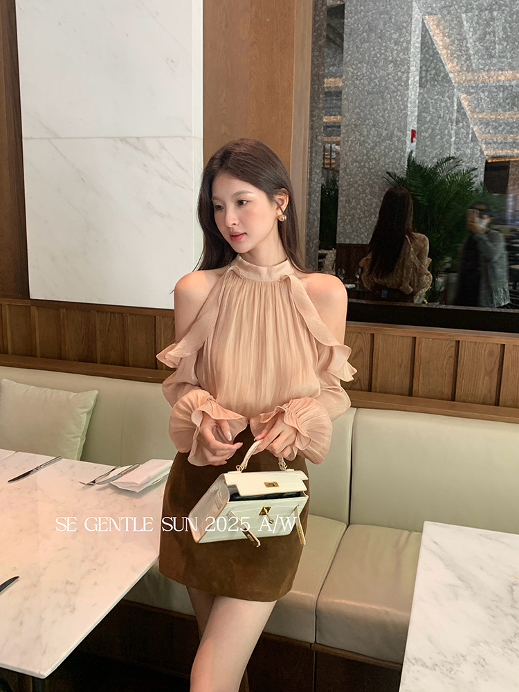 Xiuxixi 2025 가을 화이트 라벨 한국어 버전 다목적 기질 러플 쉬폰 긴팔 셔츠 여성상의 89505스토어 가기