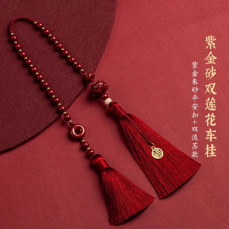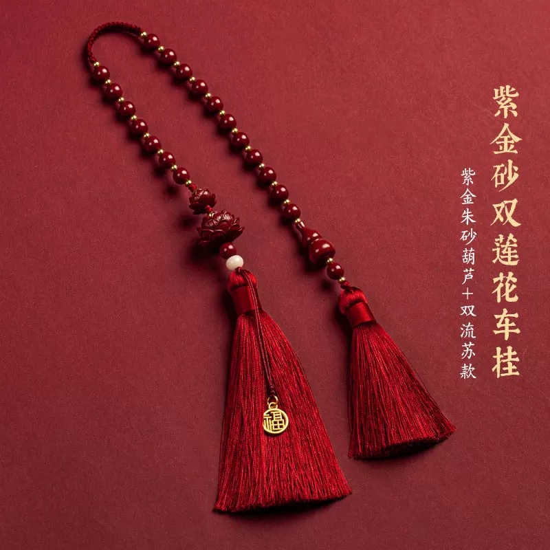 Cinnabar 자동차 펜던트, 고급 Lotus Ping An 자동차 펜던트, 새로운 남성 및 여성 자동차 백미러, 자동차 펜던트 선물