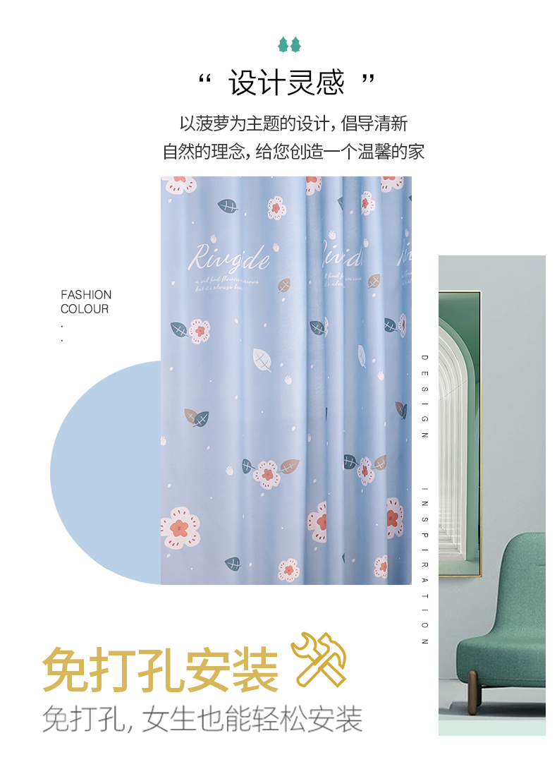 렌탈하우스용 커튼을 설치할 필요가 없으며 간단한 접이식 막대, 사무실용 암막커튼 세트 2025 새로운 스타일