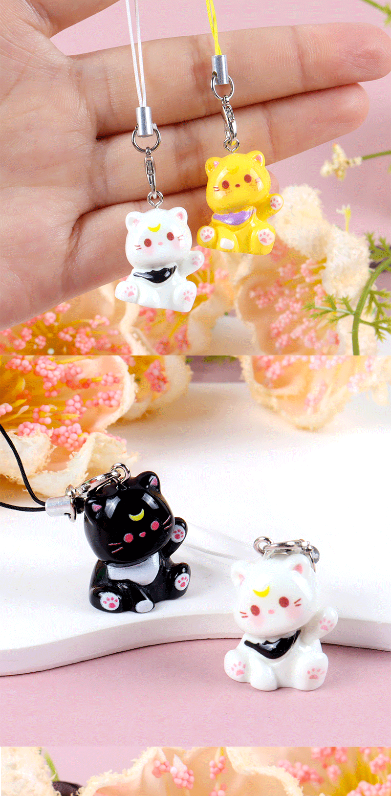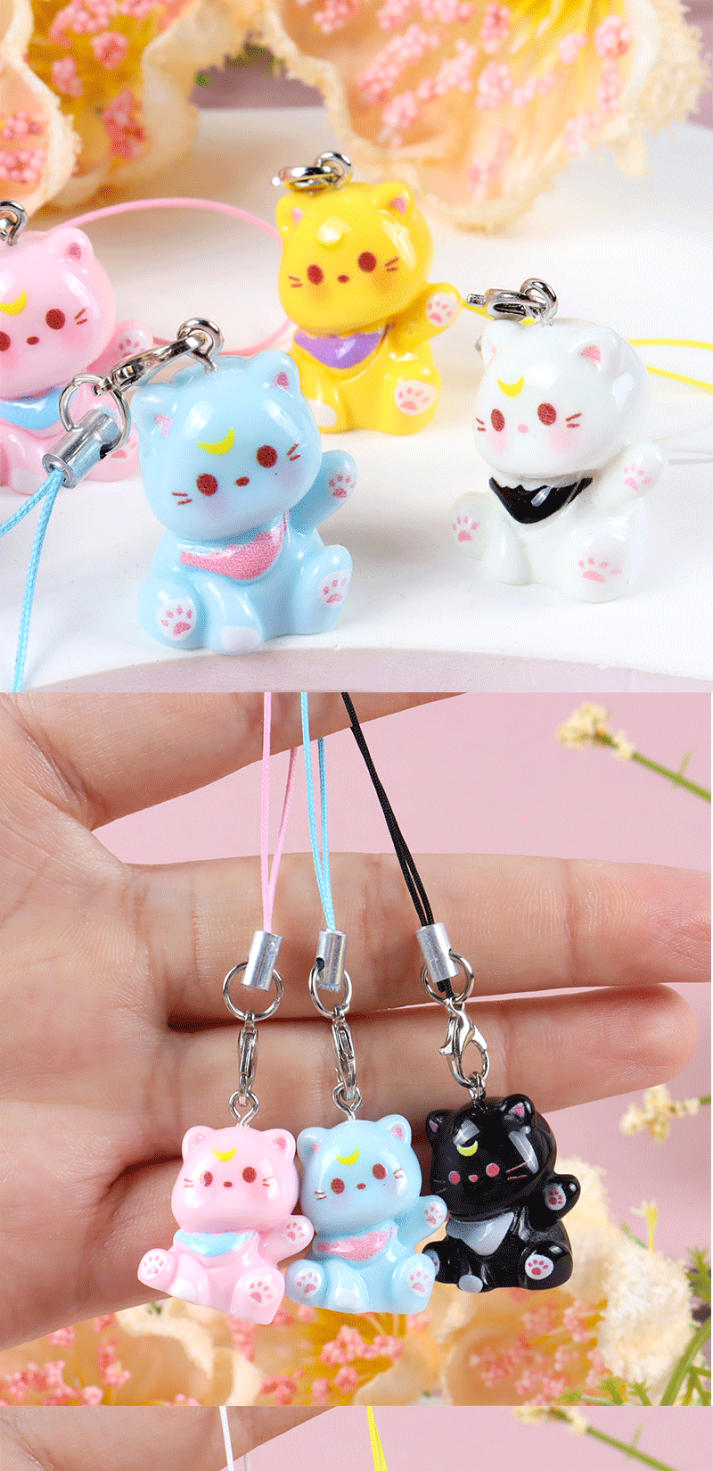 휴대 전화 로프 K04 만화 새끼 고양이 휴대 전화 체인 귀여운 수지 키 체인 소녀 학생 가방 펜던트 커플 친구스토어 가기