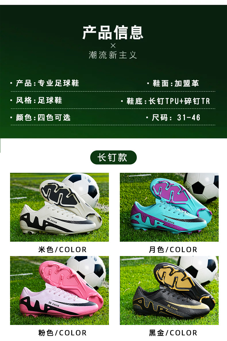 跨境新款刺客足球鞋成人训练AG长钉TF碎钉青少年学生训练球鞋批发스토어 가기