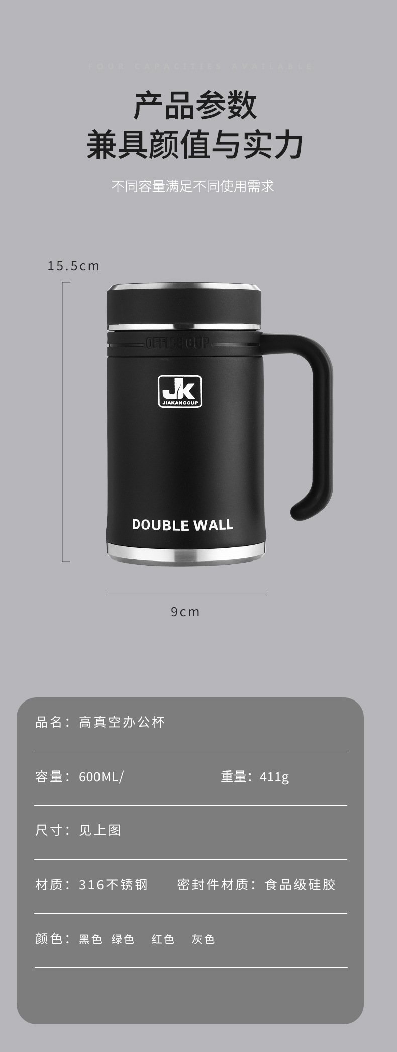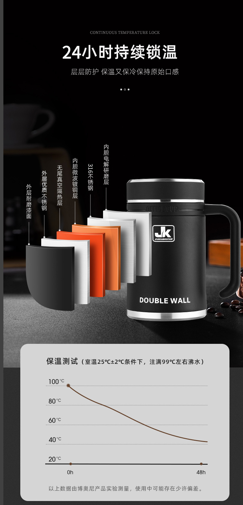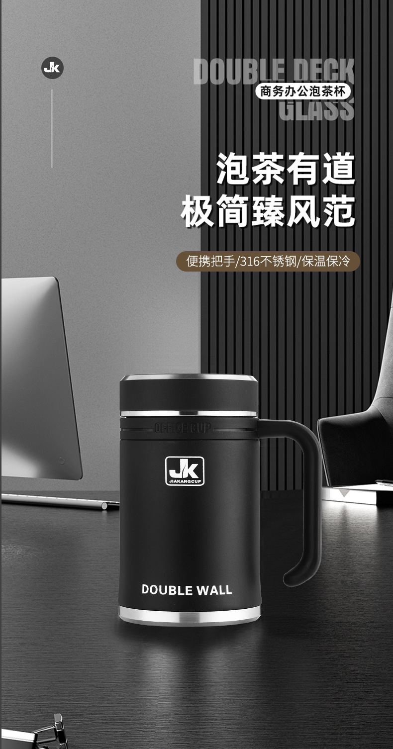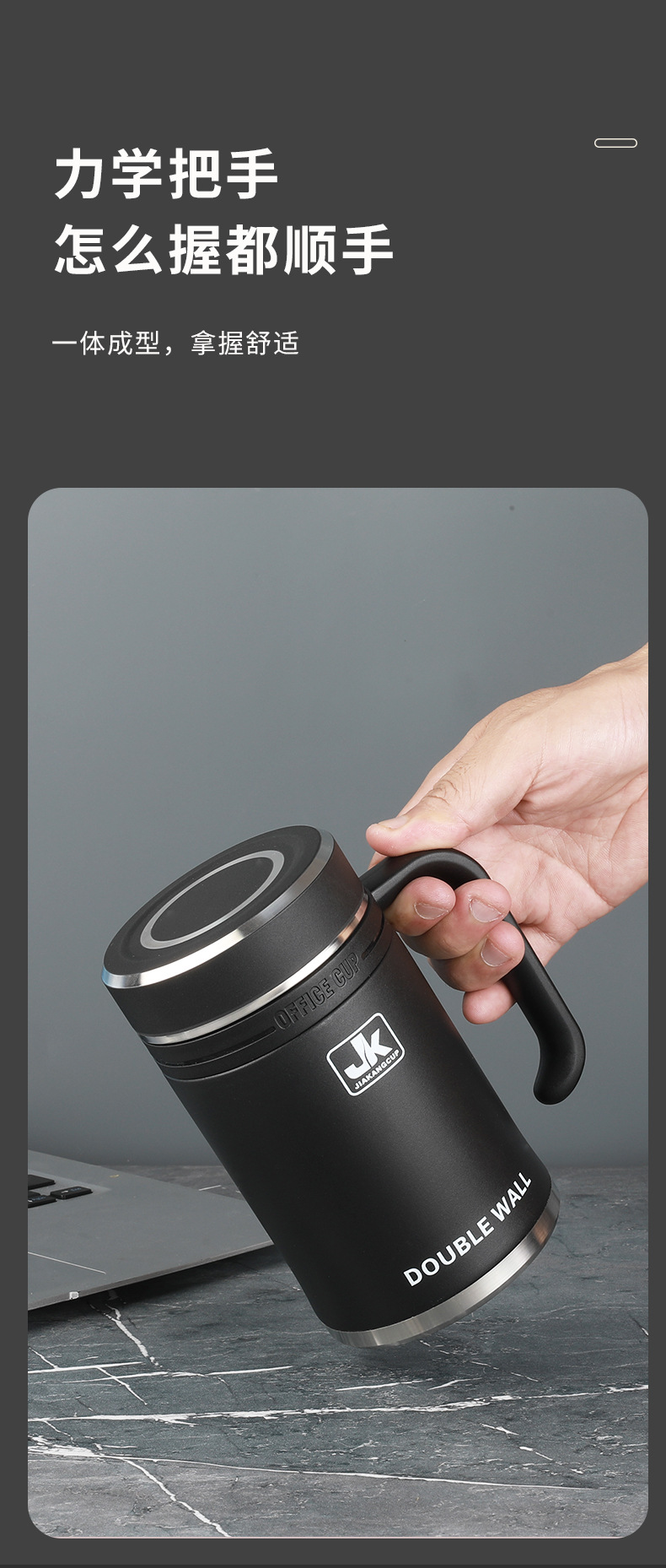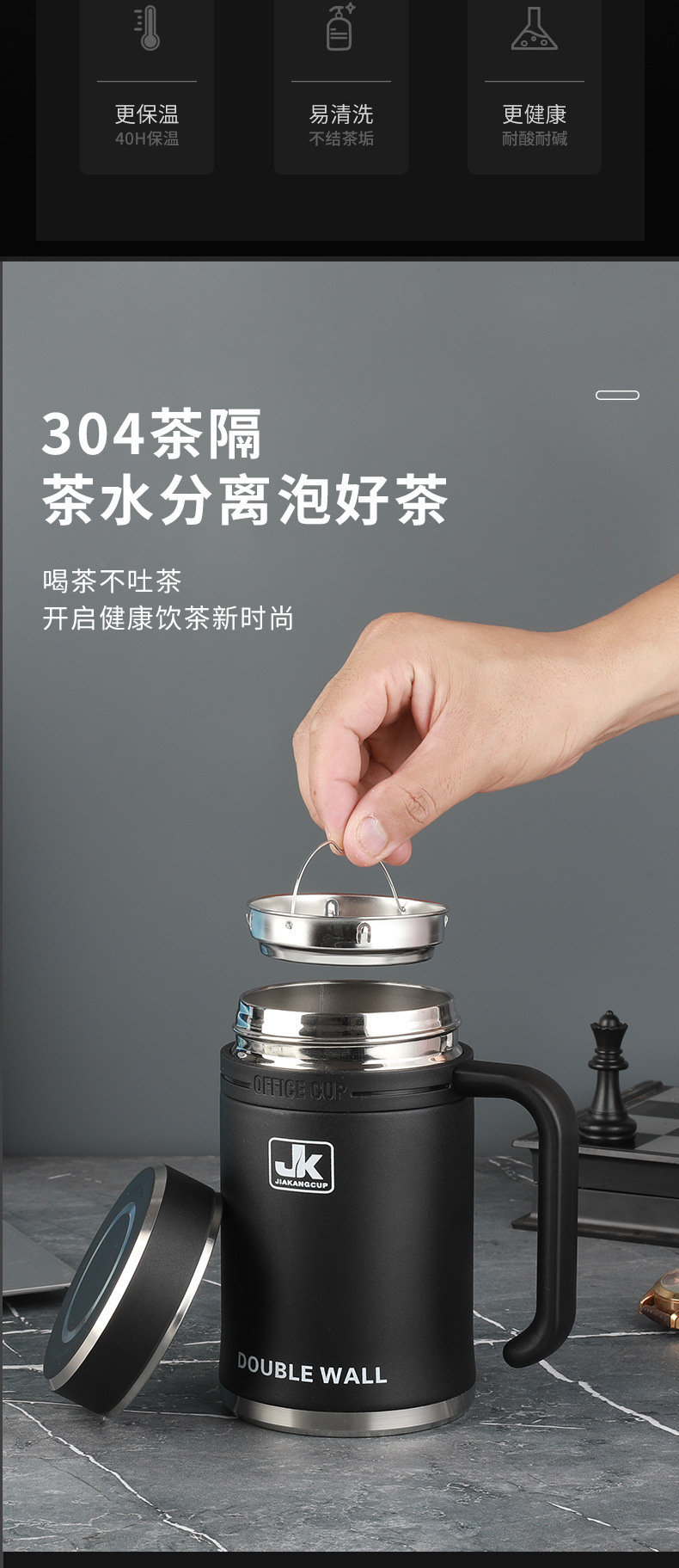 고급 316 스테인레스 스틸 보온병 컵, 손잡이가 있는 이중층 진공 비즈니스 사무실 물컵, 맞춤형 티컵