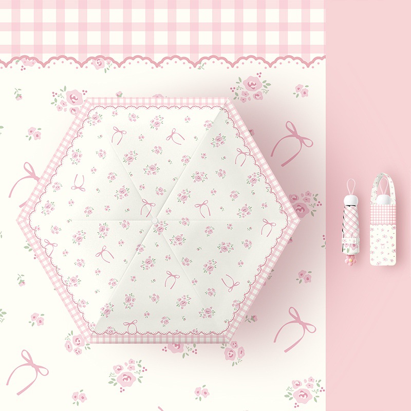 • 6본핑크가든] 체크무늬 플로럴 [자외선차단-UPF50+