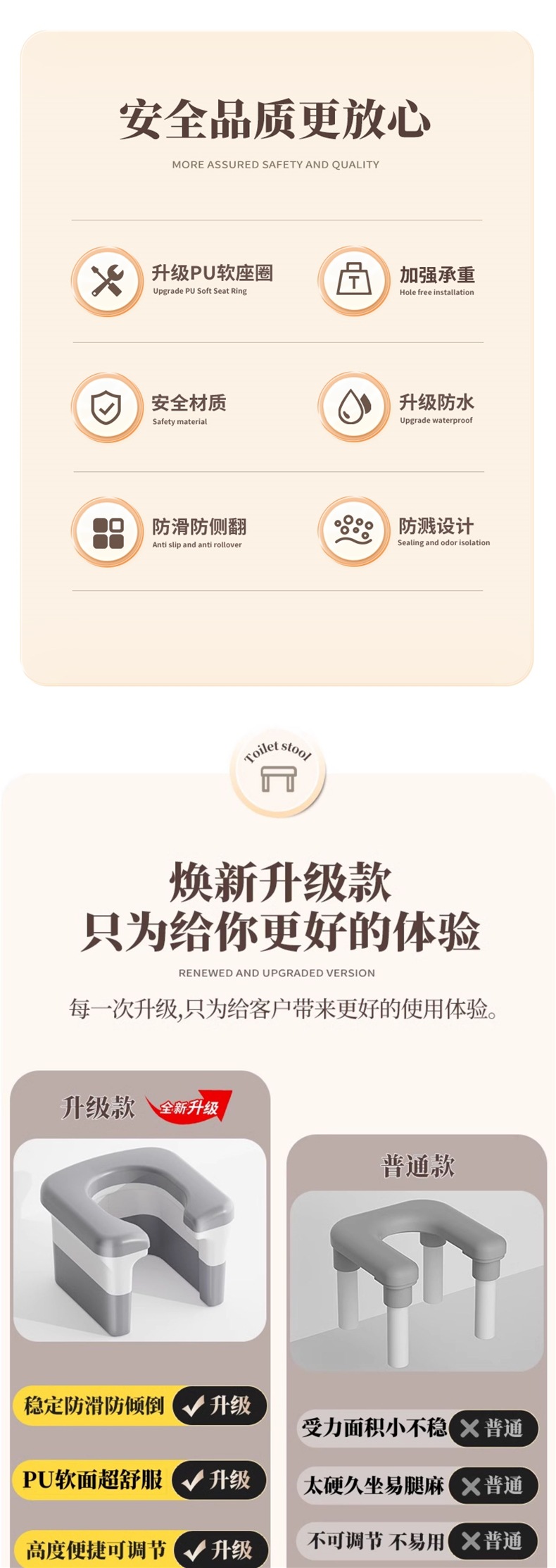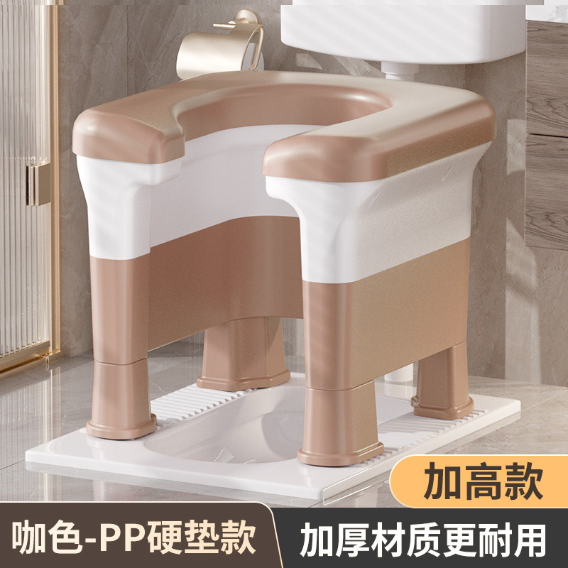 • ☆ 두꺼워지고 안정됨 ☆ 스쿼트 변기 PU 소프트 쿠션 모델 [커피 색상 + 높은 발] - 이중 목적 변기/목욕 의자