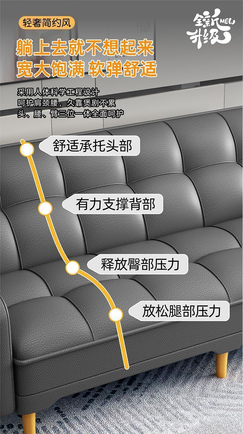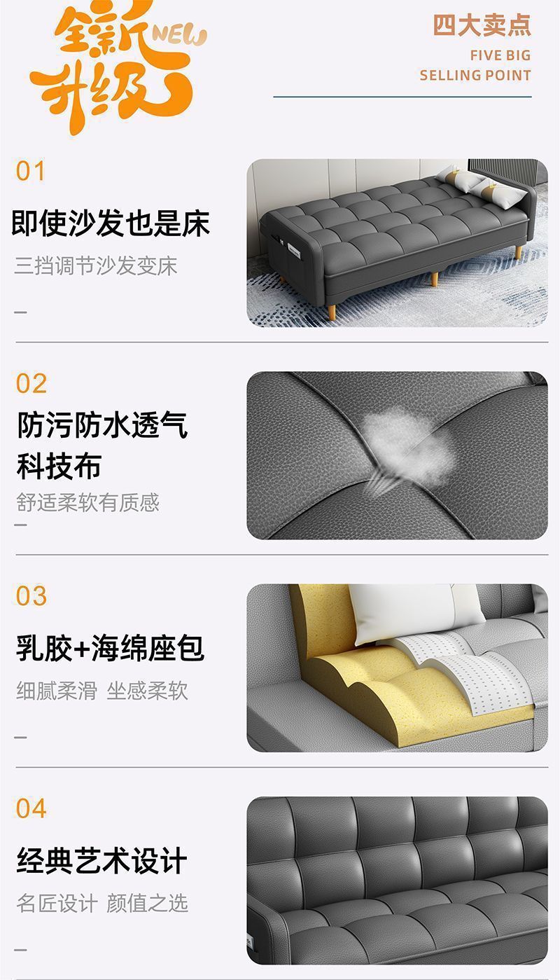 새로운 거실 소파 베드 다기능 소파 임대 작은 아파트 이중 목적 가죽 소파 접이식 고양이 스크래치 단순스토어 가기